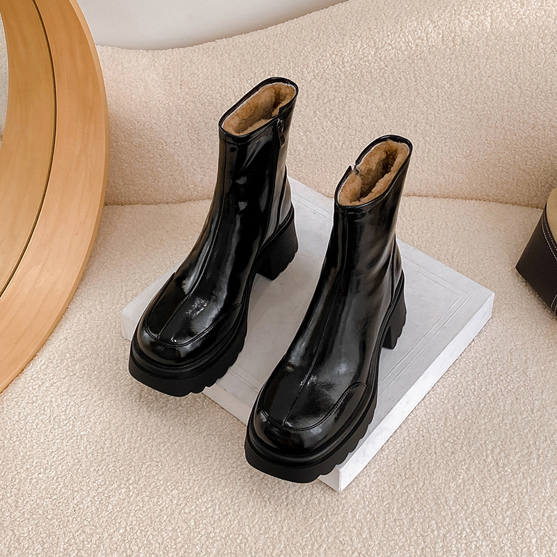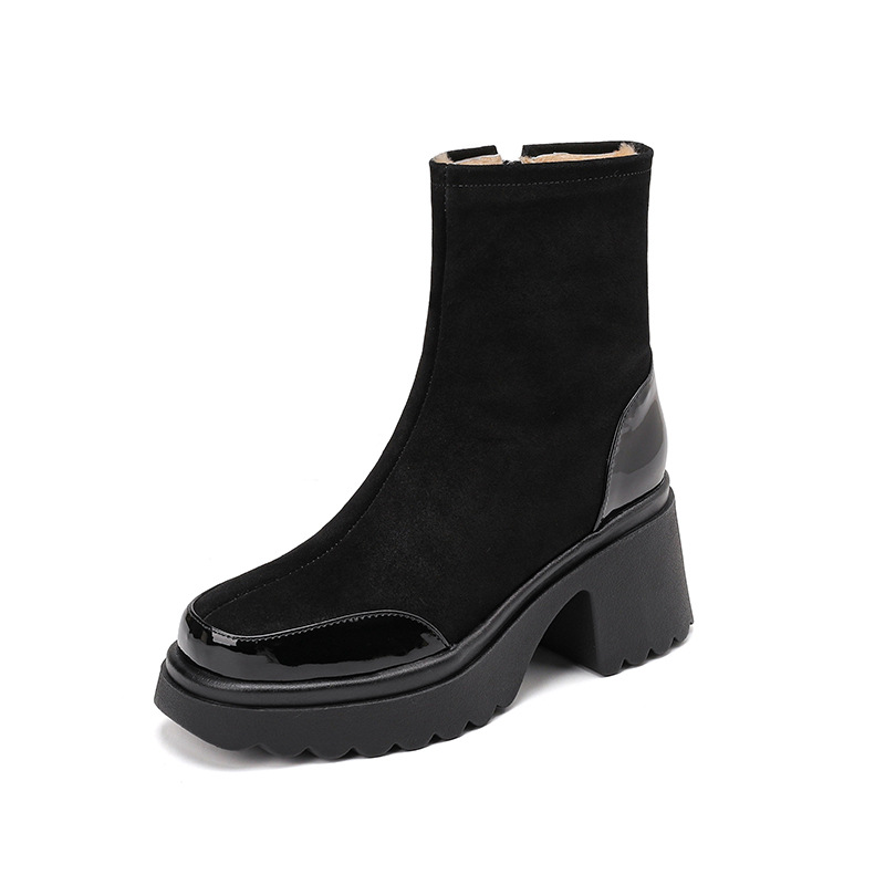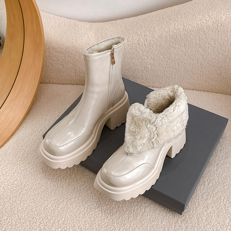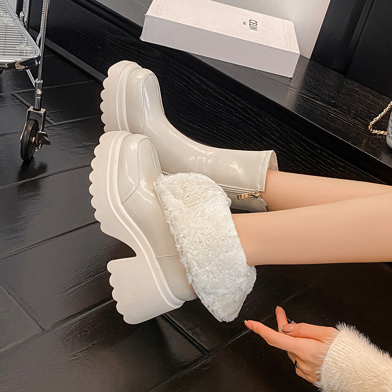 加绒加厚羊毛靴短靴女厚底靴2024冬季新款皮毛一体高跟羊毛雪地靴
