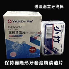 雅克菱正畸保持器清洁片30片隐形牙套假牙义齿泡腾片送盒子收纳盒