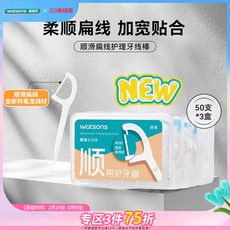 屈臣氏薄荷味扁线护理牙线棒50支x6盒家庭装清洁口腔新旧包装随机