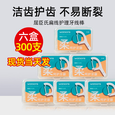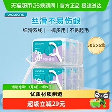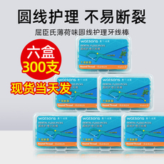 屈臣氏薄荷圆线多效护理牙线棒50支x6盒家庭装口腔牙缝清洁污垢