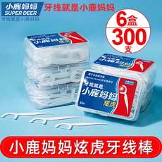小鹿妈妈贵虎牙线棒一次性安全清洁超细家庭装剔牙签线12盒600支