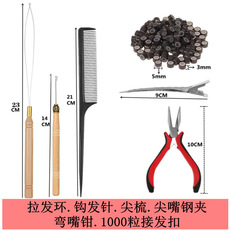 跨境镭射金丝接发工具弯嘴钳钩针硅胶扣尖梳 六件套假发配件