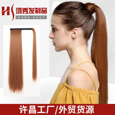 新款直销化纤欧美外贸假发配件逼真魔术贴直双马尾女长直发