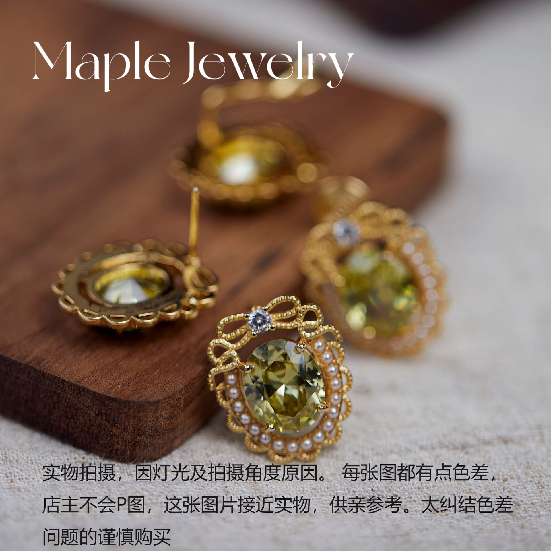 Maple【温莎庄园】法式油画框复古耳钉典雅橄榄绿奥地利水晶耳环