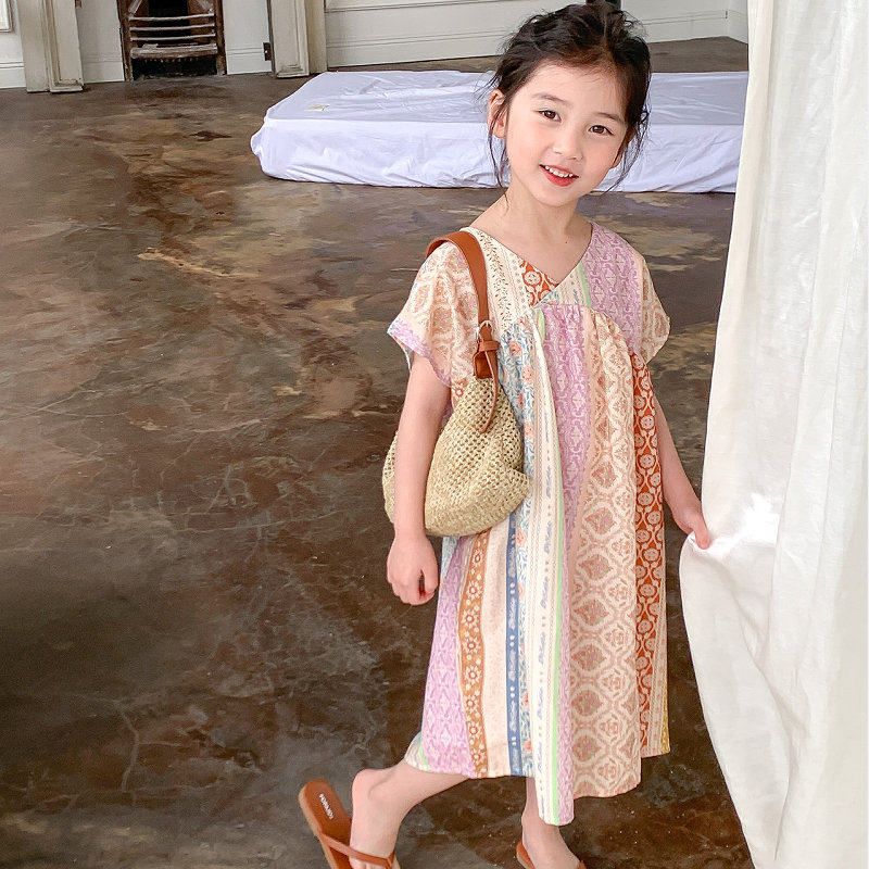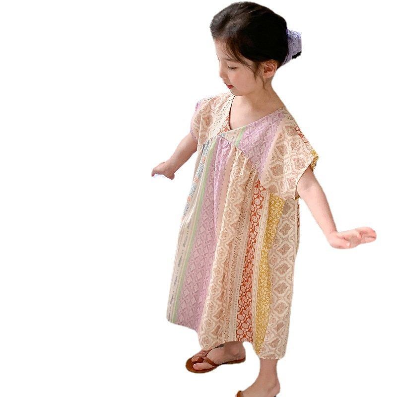 女童裙子民族风V领连衣裙公主裙25夏装新款外贸童装代发3-8岁