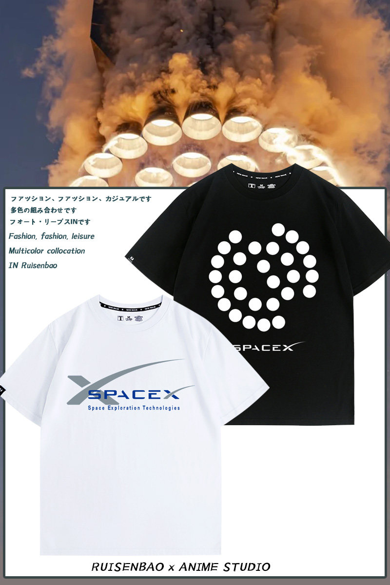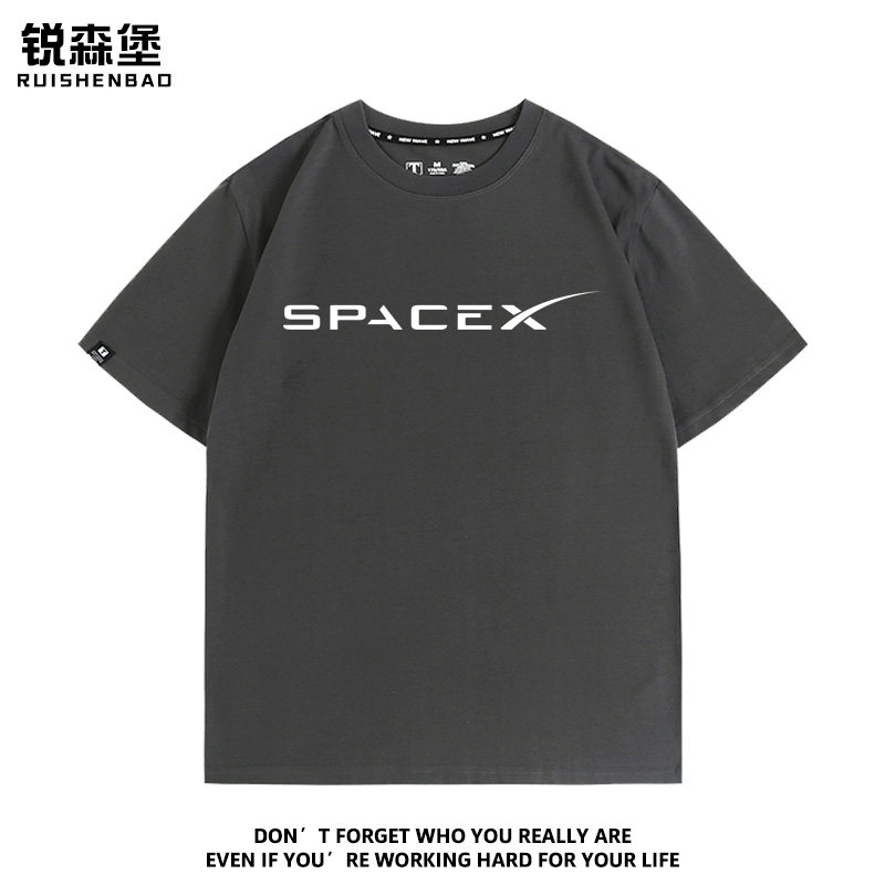spacex太空探索技术星舰发射ins猎鹰九号短袖T恤衫夏季男纯棉宽松