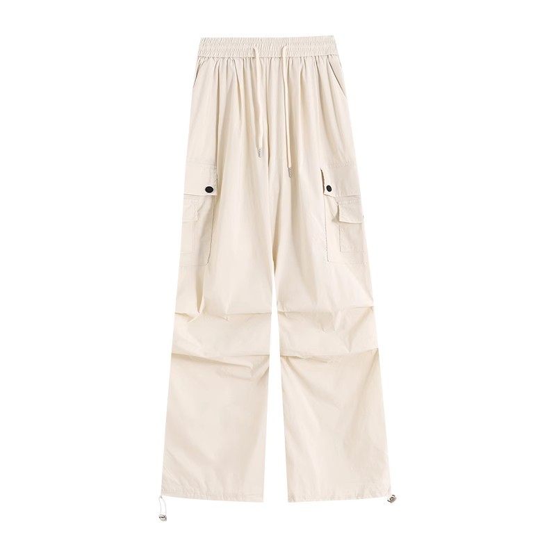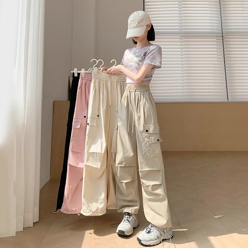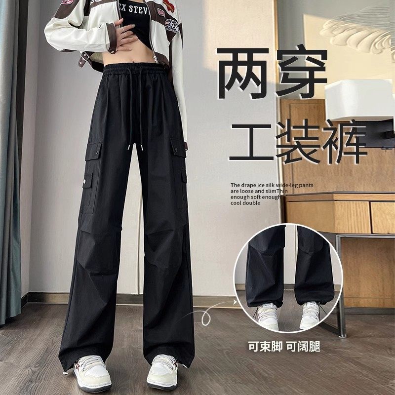 美式工装裤女薄款2024夏季小个子黑色直筒阔腿宽松休闲运动裤子潮