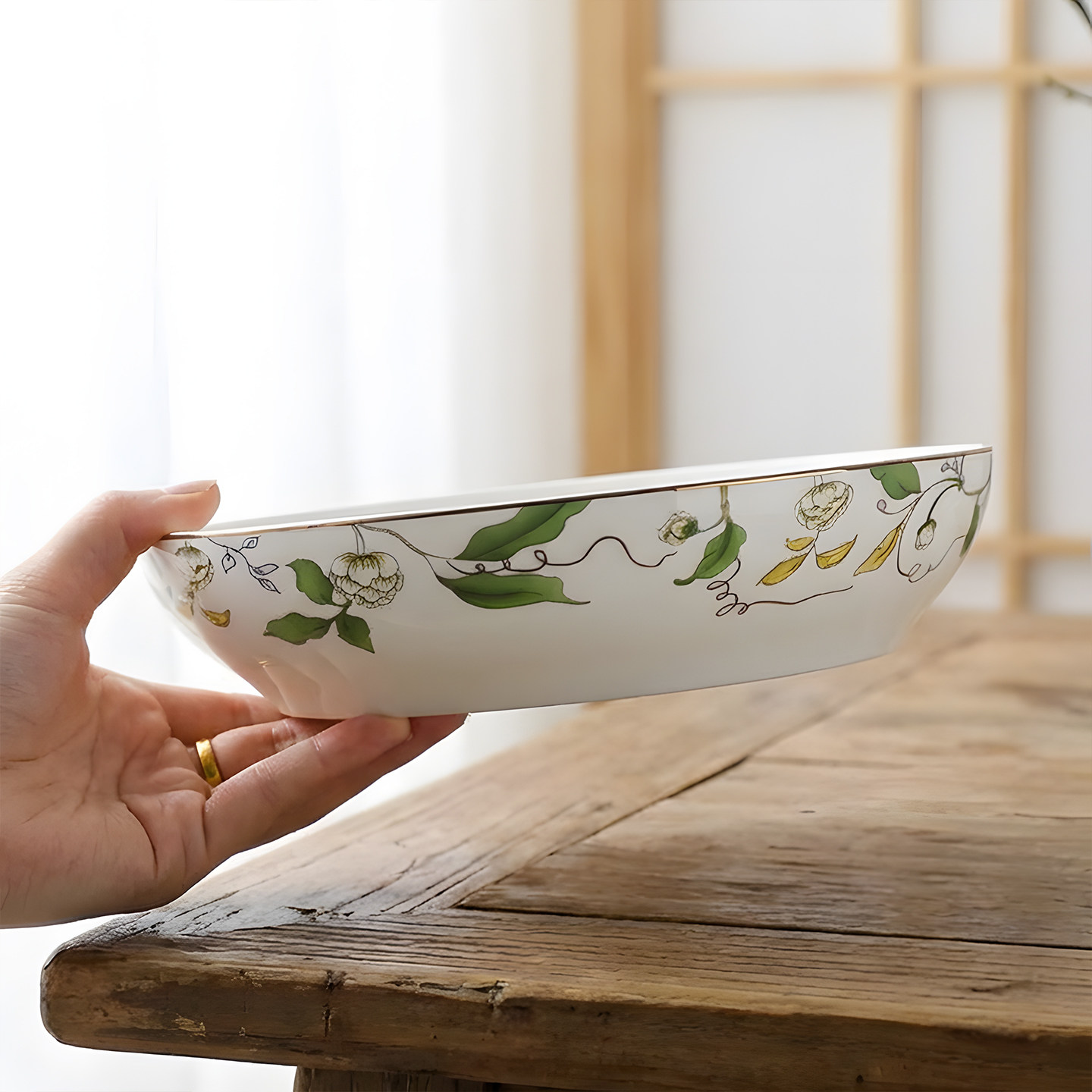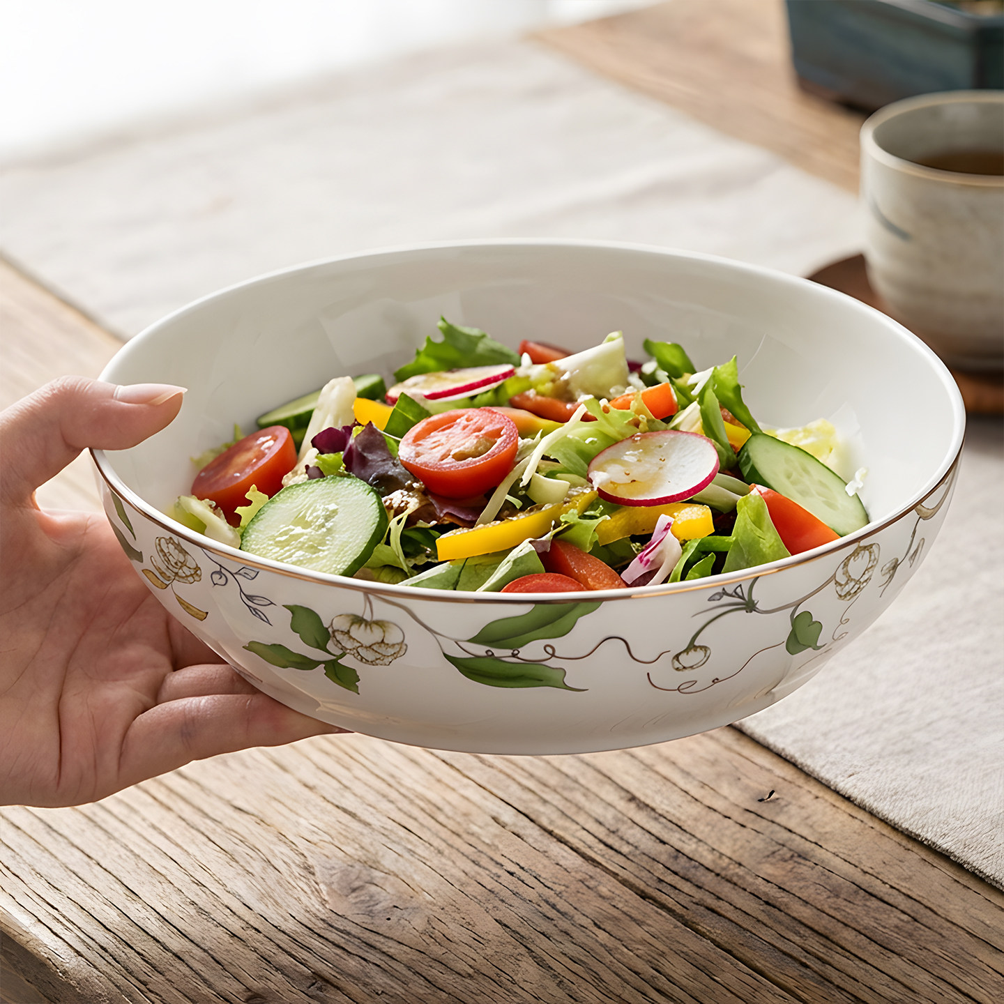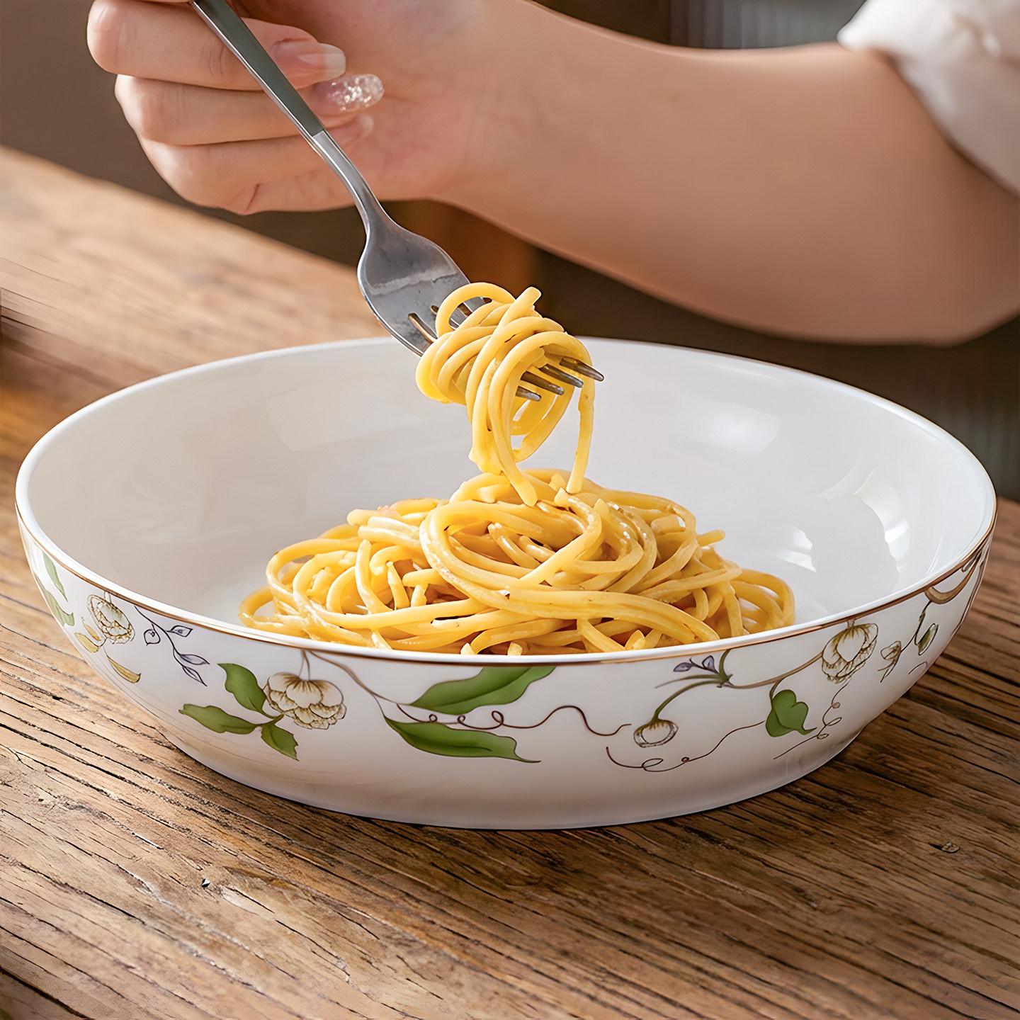 9英寸大盘子汤盘深盘沙拉盘家用菜盘早餐盘骨瓷水果盘实用可微波
