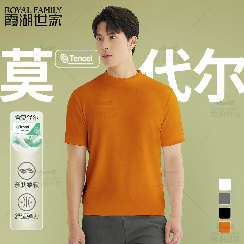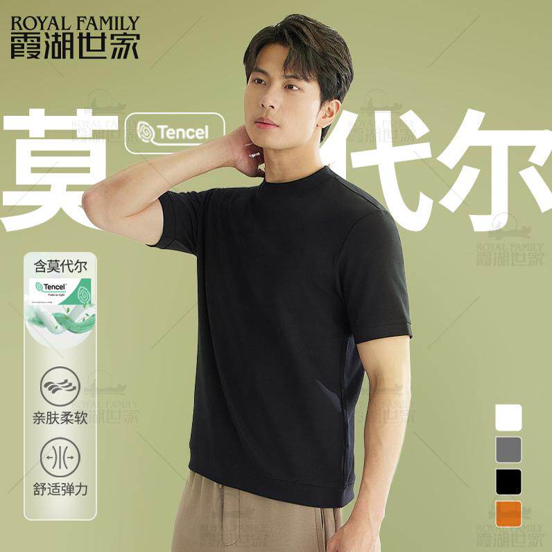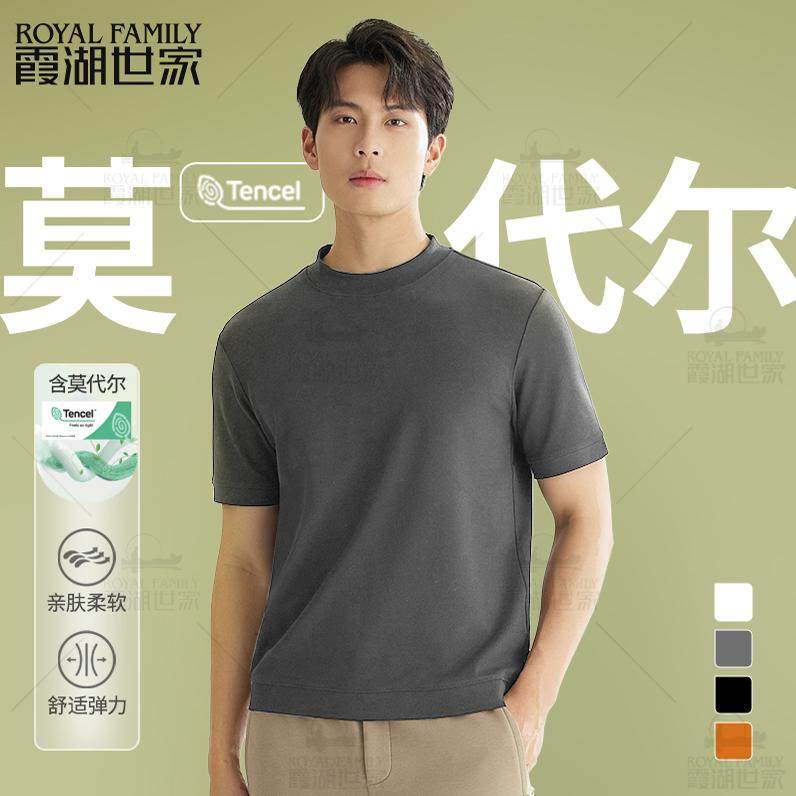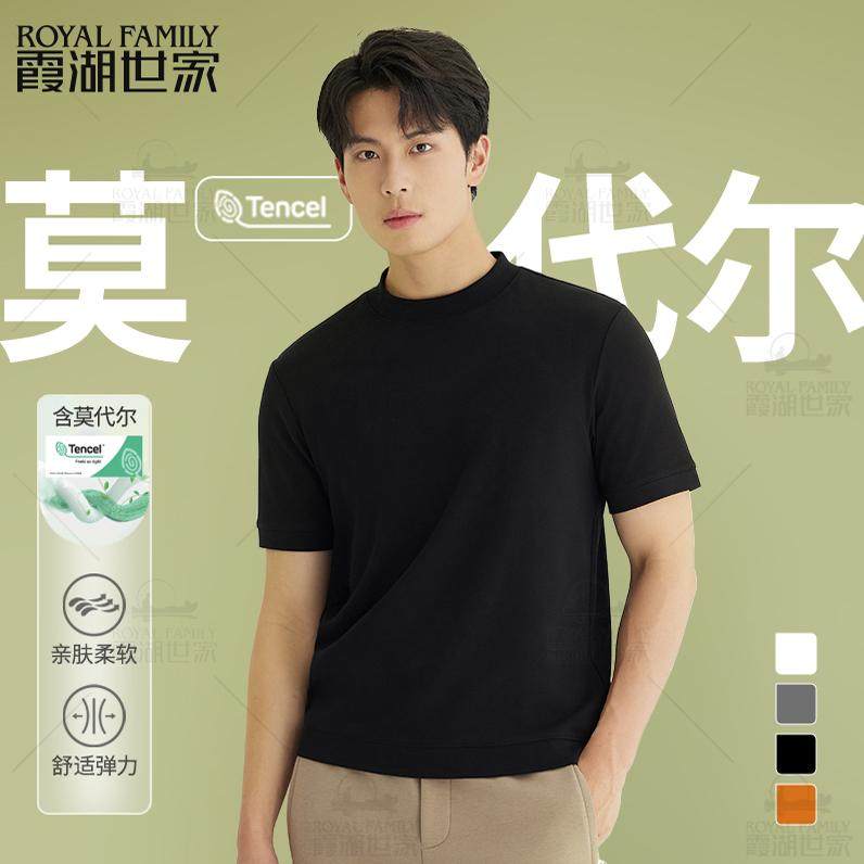 【兰精莫代尔男神T】霞湖世家短袖T恤男夏季重磅7A抑菌打底衫097B