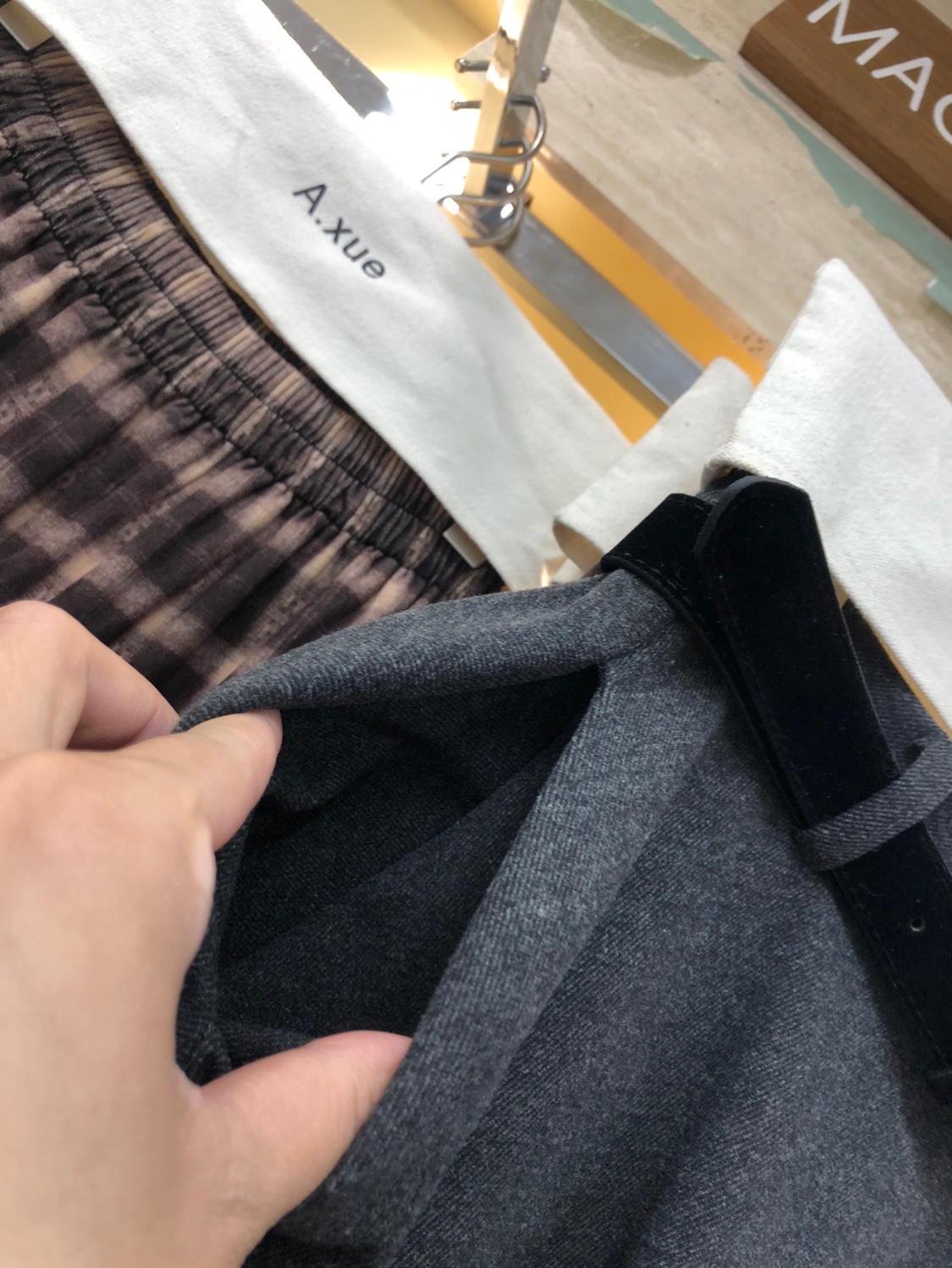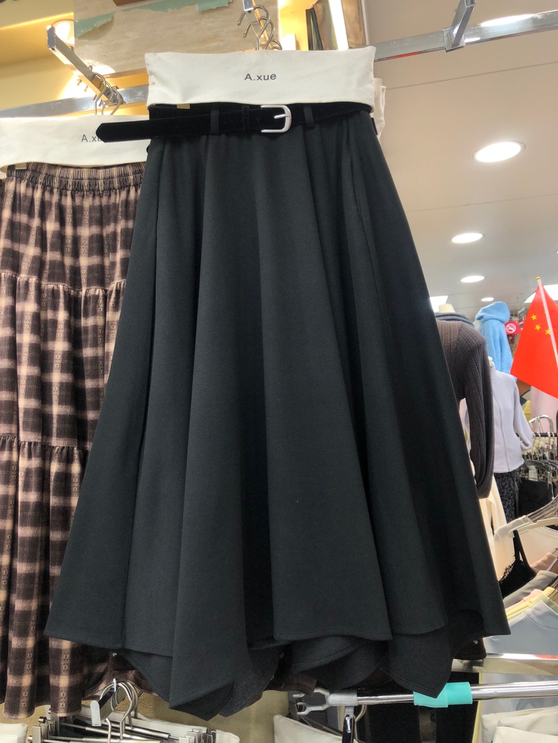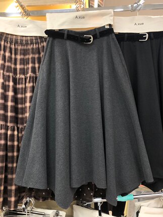 2025秋冬口袋配腰带小众不规则下摆毛呢子半身裙伞裙a字中长裙子