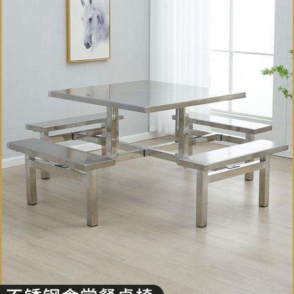 学校不锈钢连体食堂餐桌椅组合学生工厂468人公司职工饭堂快餐桌