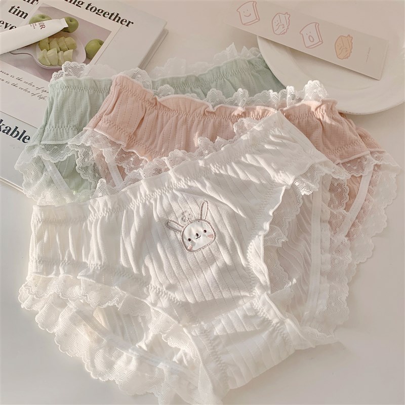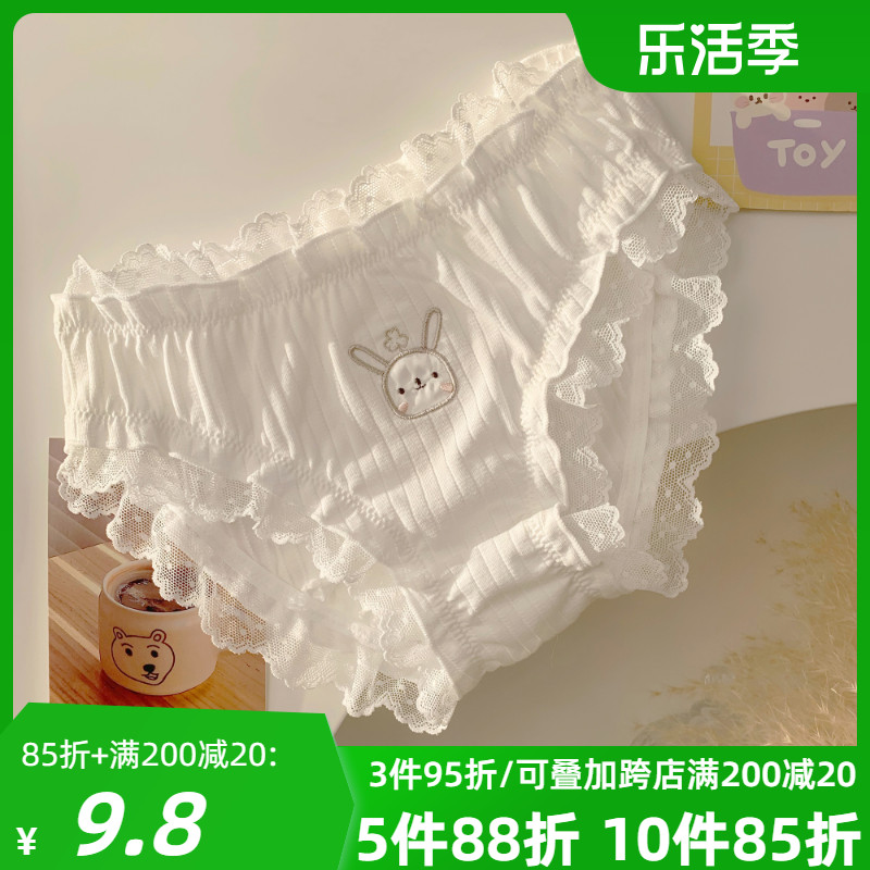 5件88折 森日和叶兔年本命年少女可爱甜美纯棉内裤女抗菌三角裤