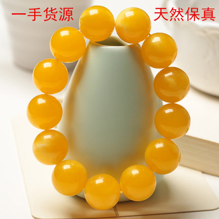 正品天然蜜蜡手串鸡油黄原矿老蜜蜡琥珀男士女款圆珠手链饰品首饰