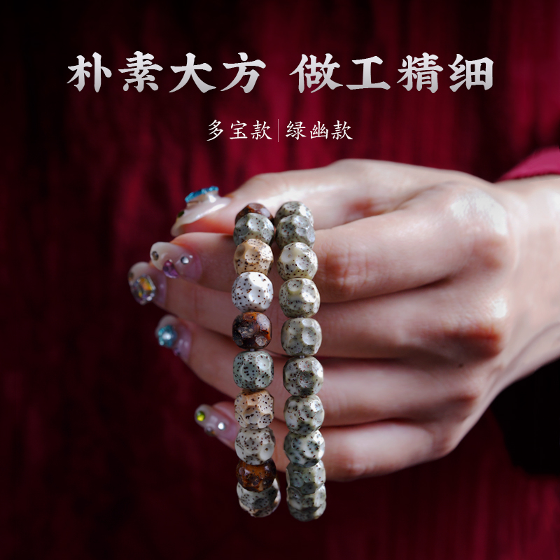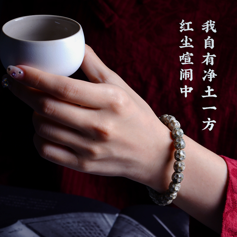 原生态无相星月菩提子手串单圈石玉化料藏式盘玩佛珠文玩手链女