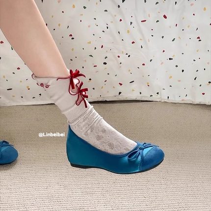 林北北蓝色浅口单鞋芭蕾蝴蝶结
