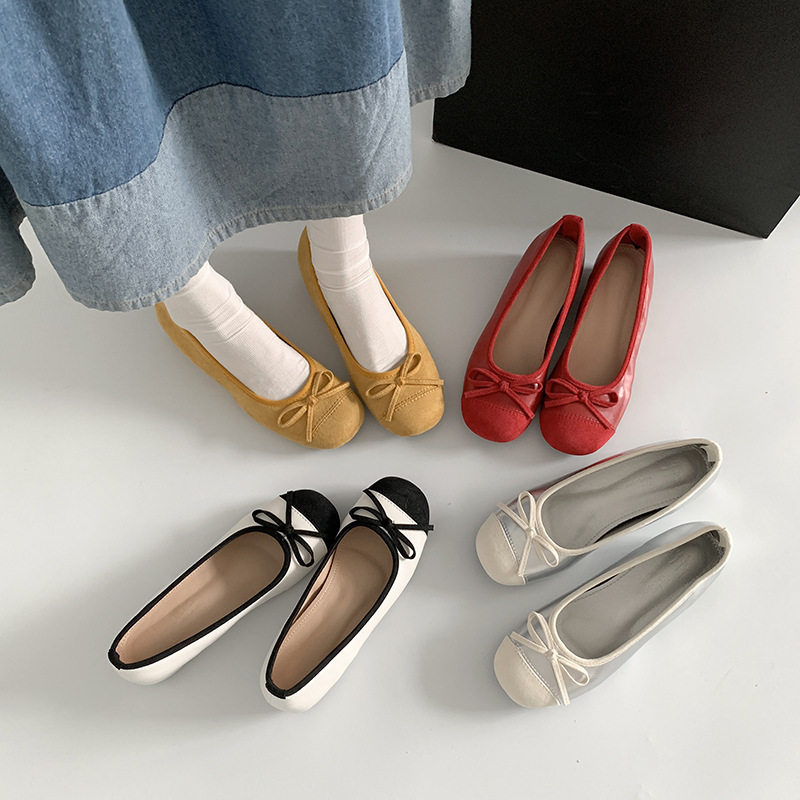 林北北蓝色浅口单鞋女新款复古鞋子芭蕾蝴蝶结平底鞋法式玛丽珍鞋