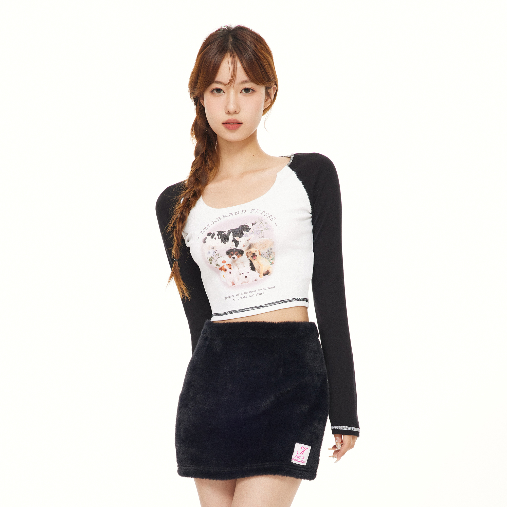 KTDA趣味动物T恤修身内搭小众辣妹短款春夏短袖长袖紧身上衣女