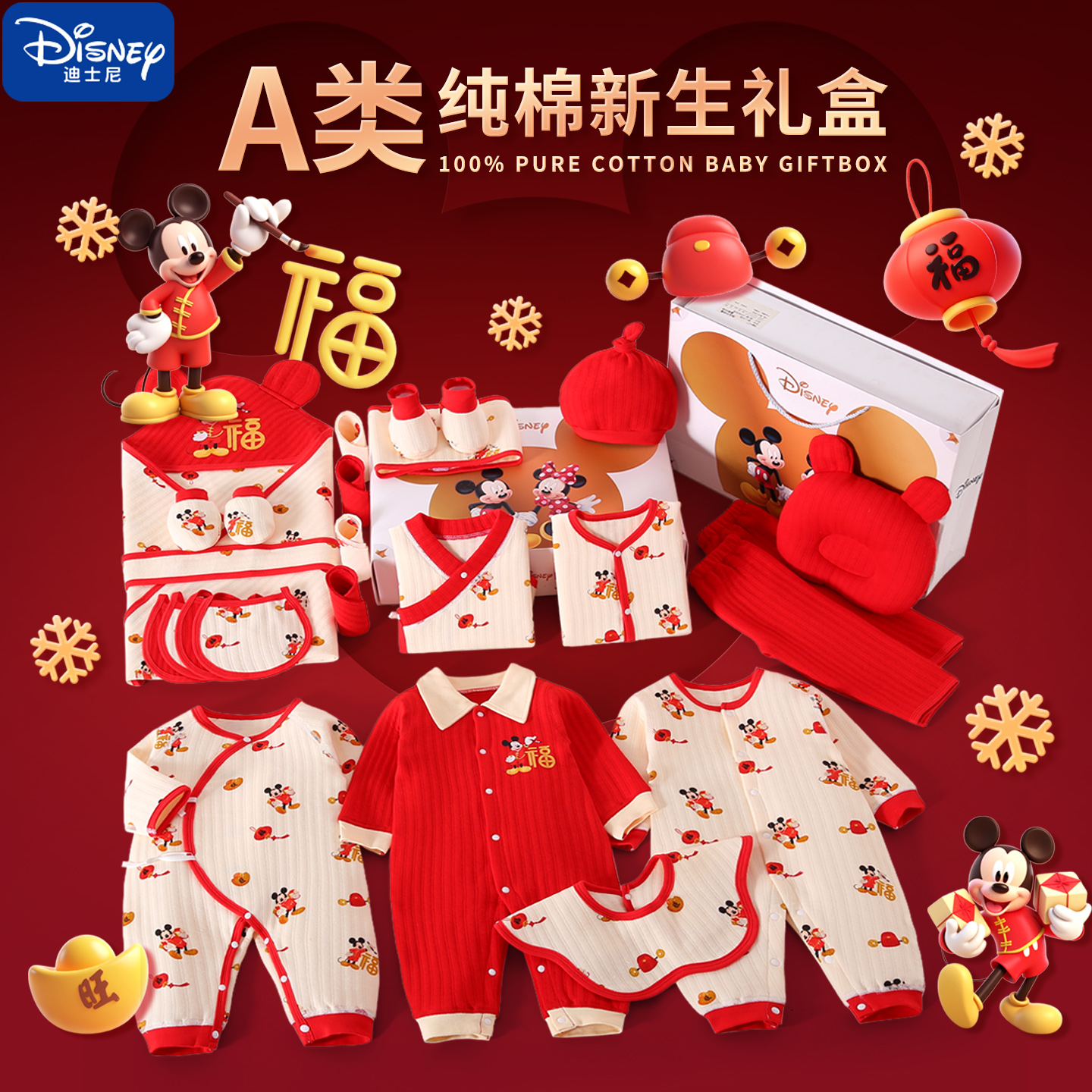 迪士尼新生婴儿衣服礼盒套装初生刚出生宝宝见面礼物高档送礼秋冬