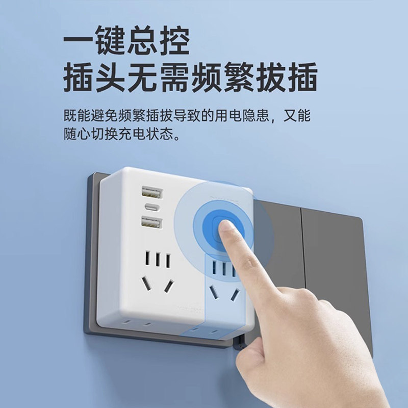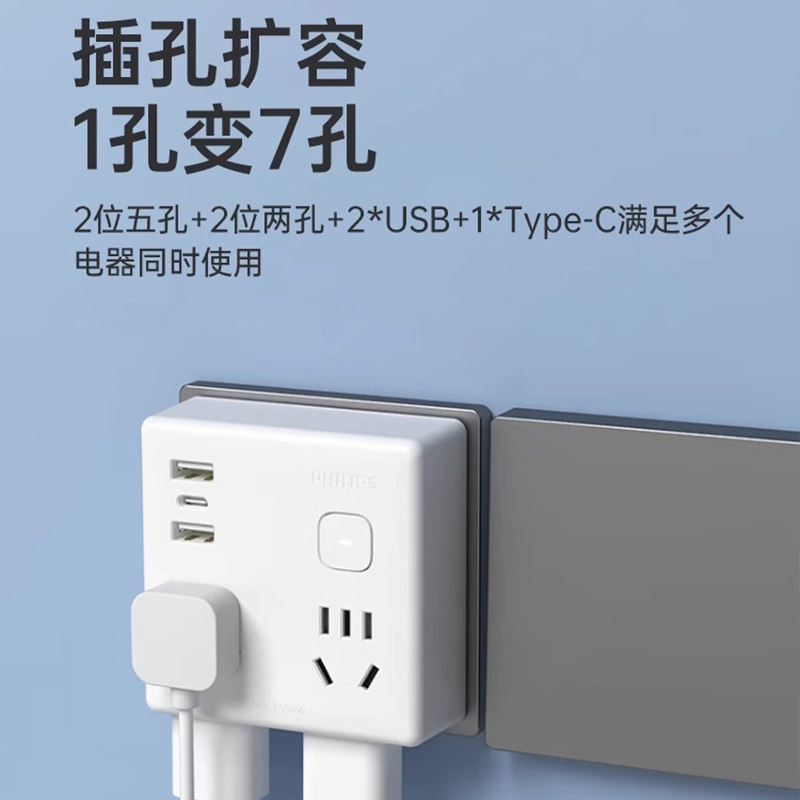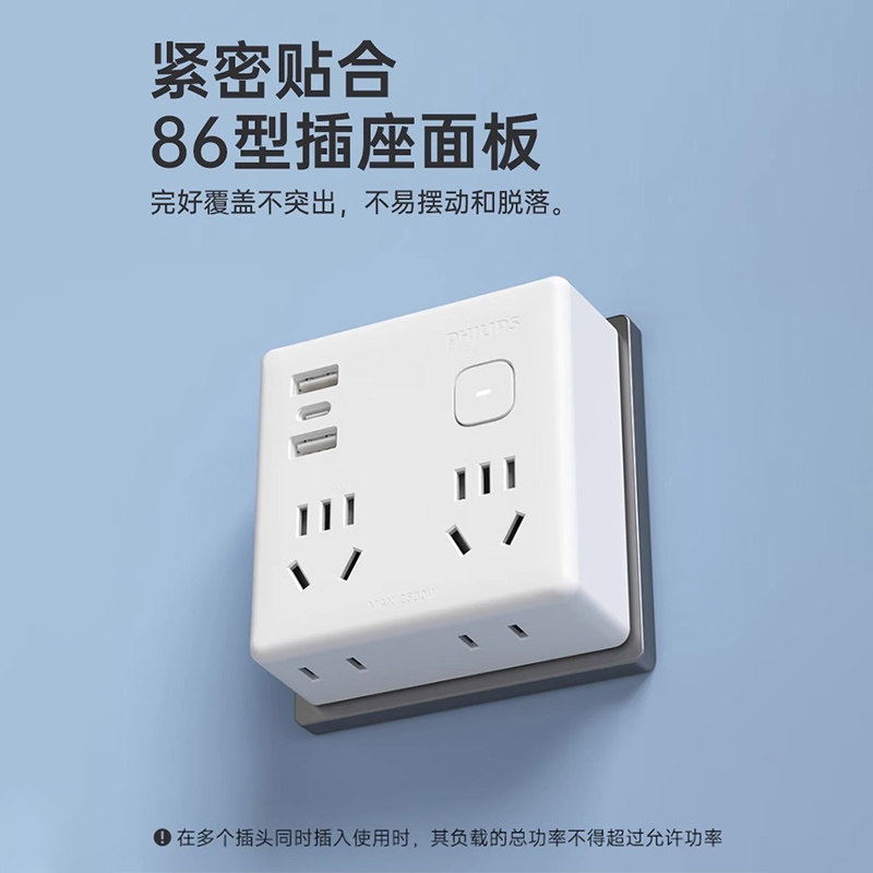 飞利浦插座转换器86型一转多孔插线板办公家用带USB转换插头排插