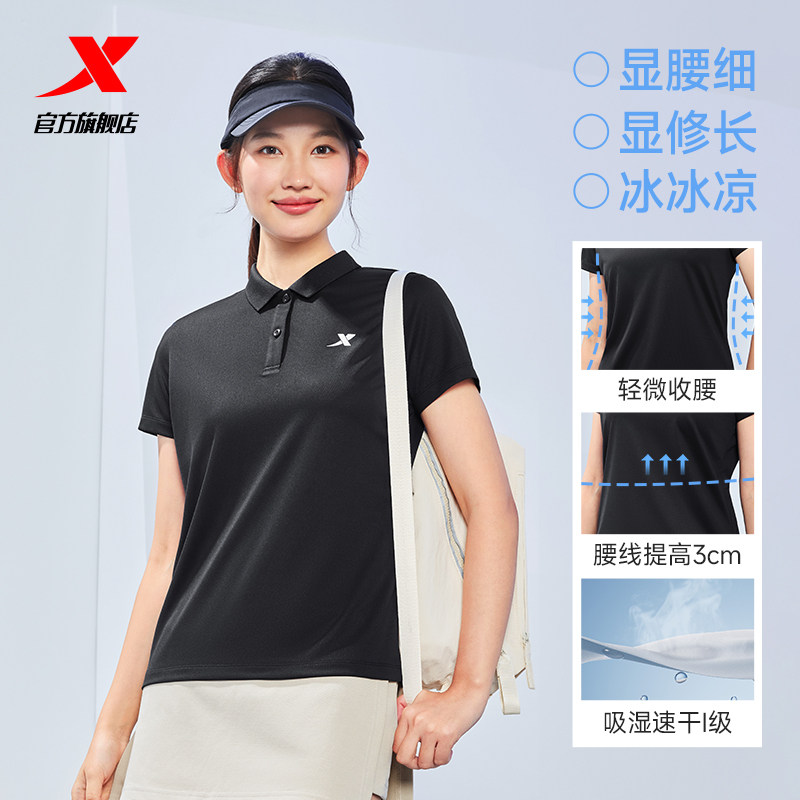 特步polo衫女短袖快干透气