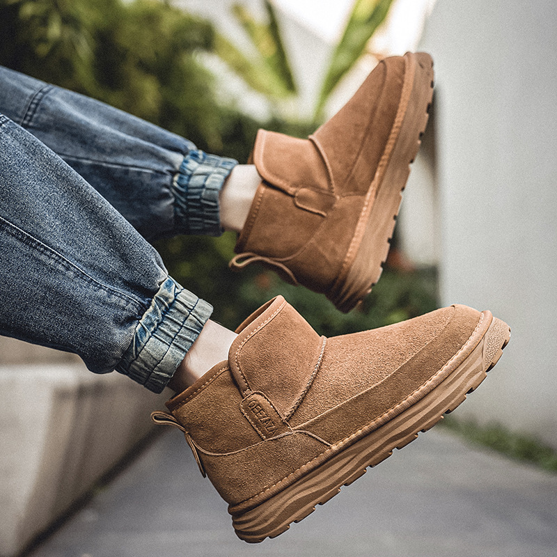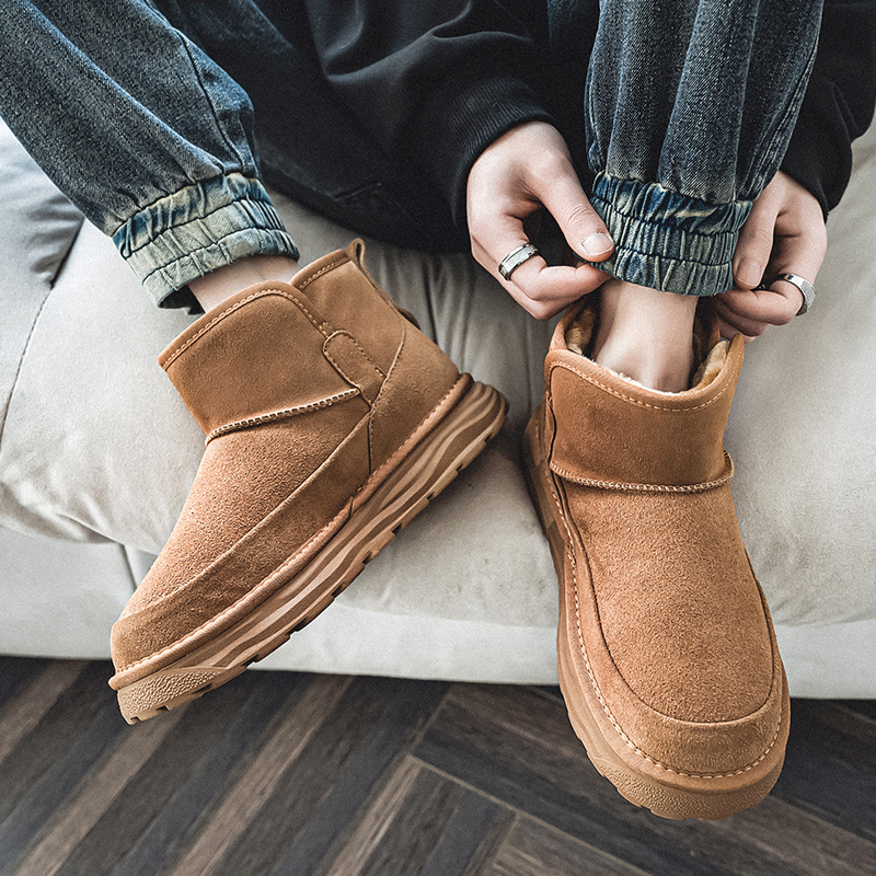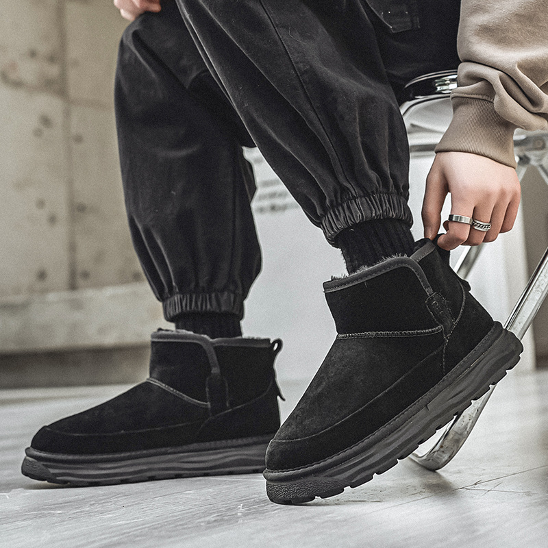 男士雪地靴新款免系带套脚皮毛一体冬季加绒保暖棉靴加厚中帮