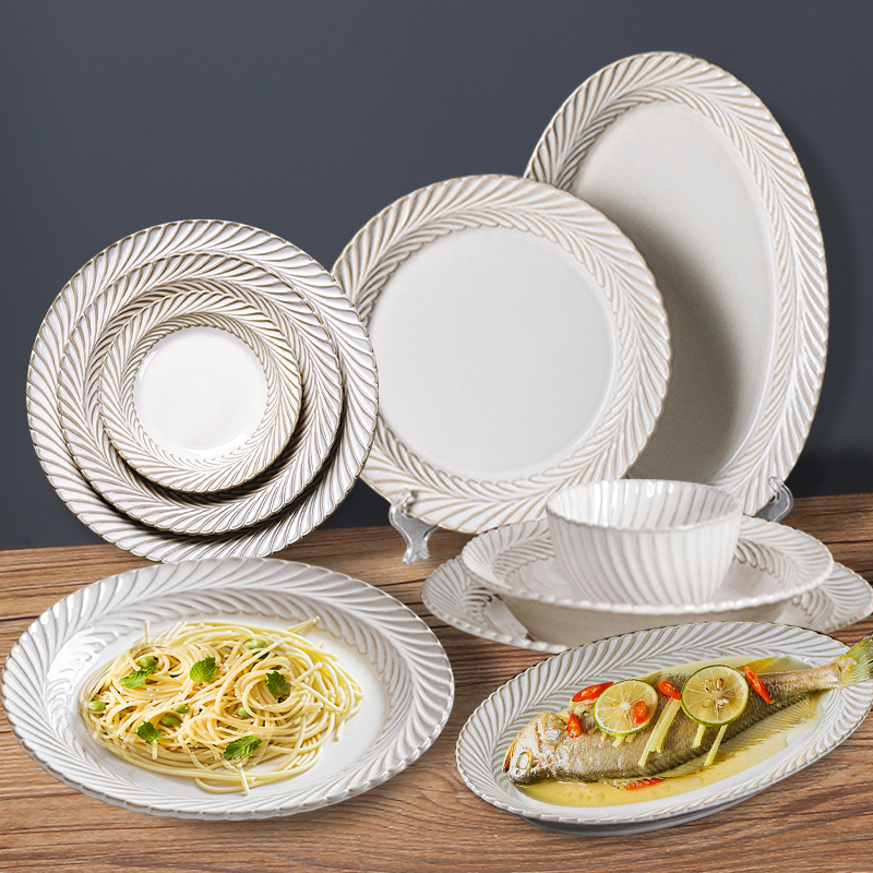 牛排餐盘家用陶瓷西餐盘意面盘日式餐具盘子碟子菜盘套装复古鱼盘