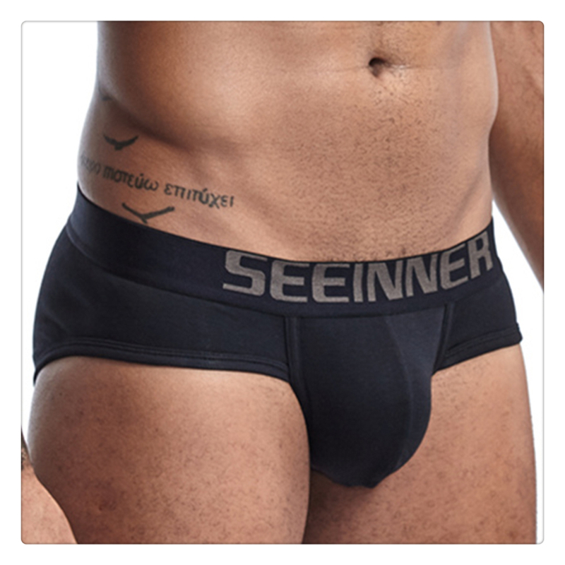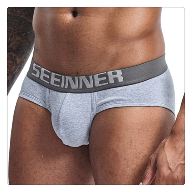 男士纯棉高品质黑白纯色内裤舒适亲肤吸汗透气U凸三角裤简约性感