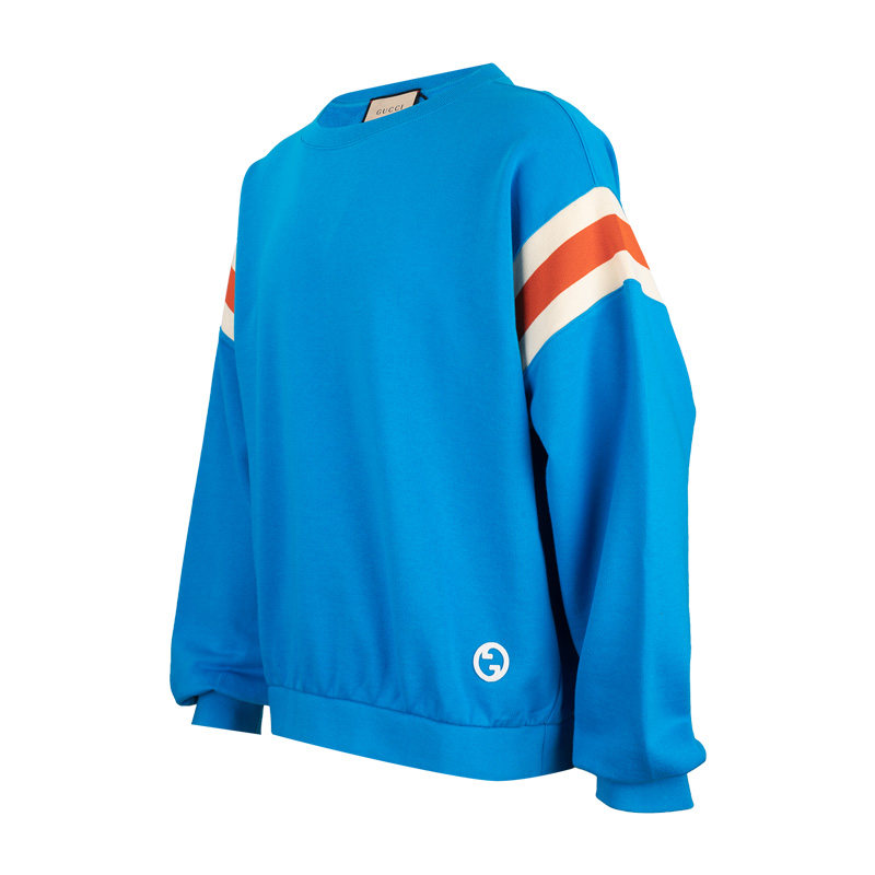 GUCCI古驰男士条纹拼色圆领套头长袖卫衣男春秋推选