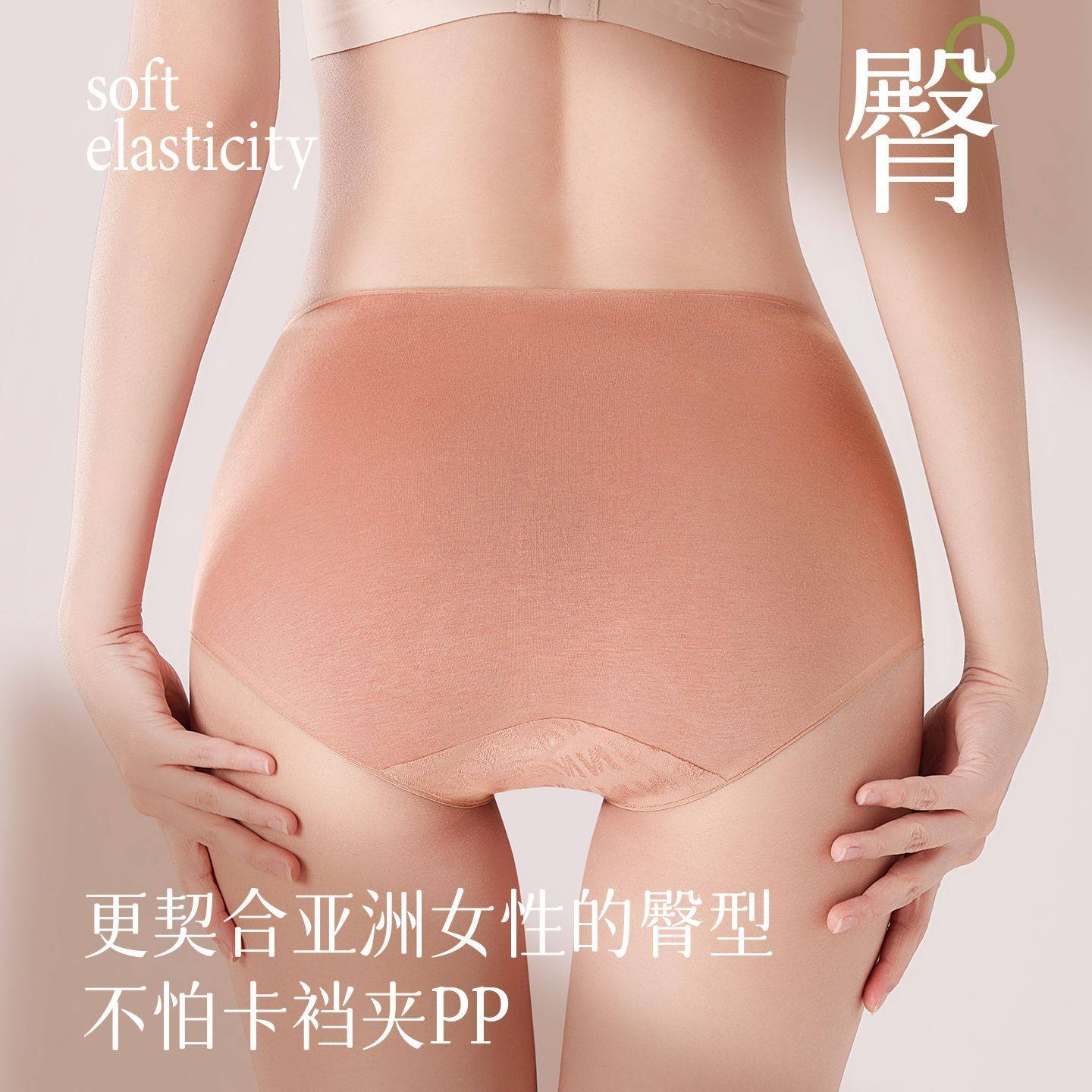 猫人内裤女中腰无痕透气女士三角裤新款10A 纯棉抑菌不夹臀短裤头
