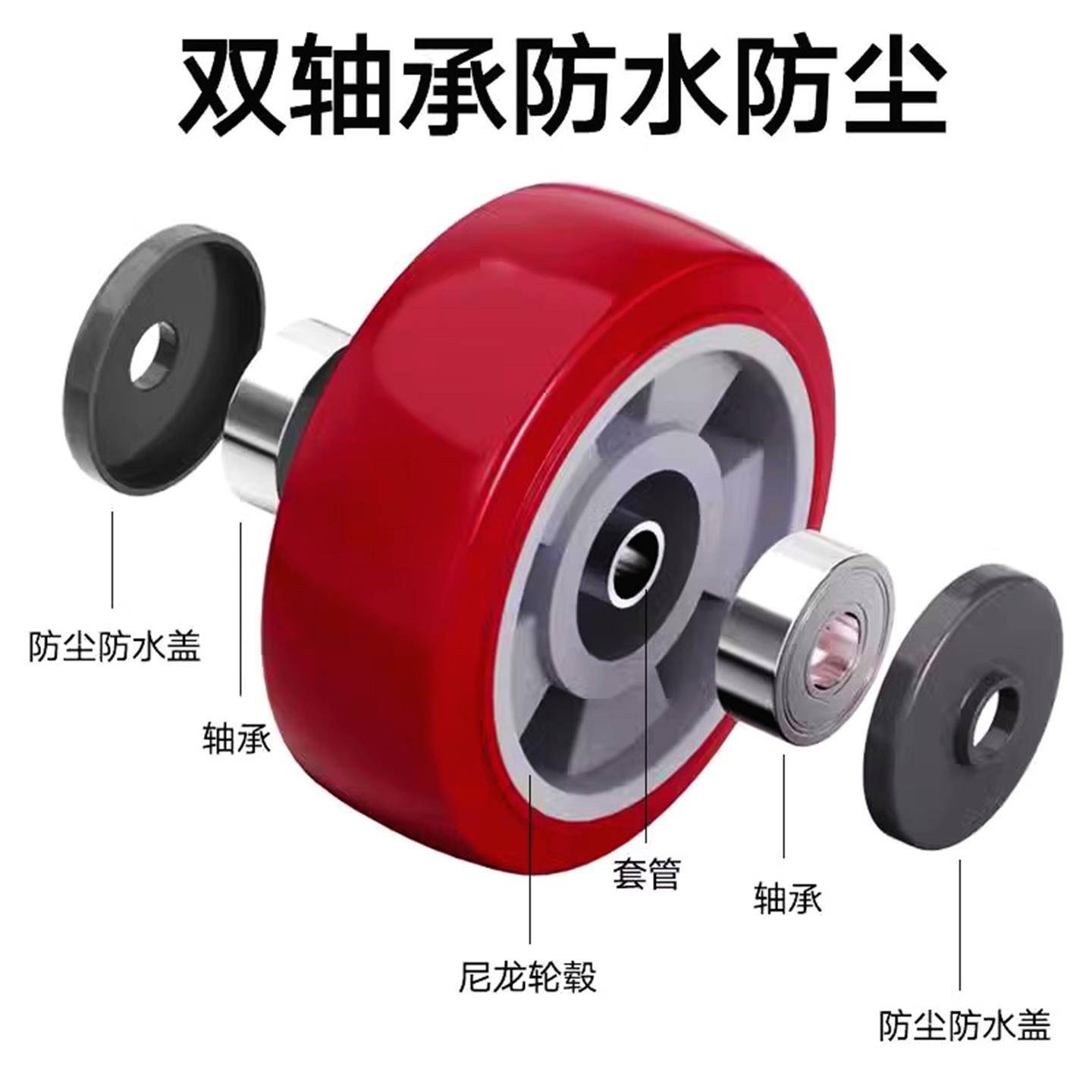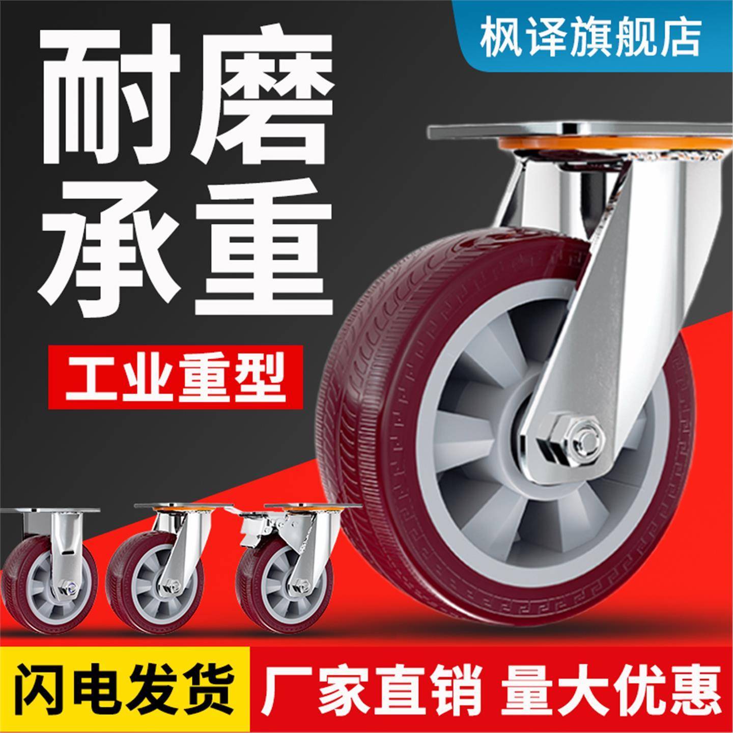 万向轮重型聚氨酯静音脚轮手推车板车轮子拖车滑轮带刹车轱辘