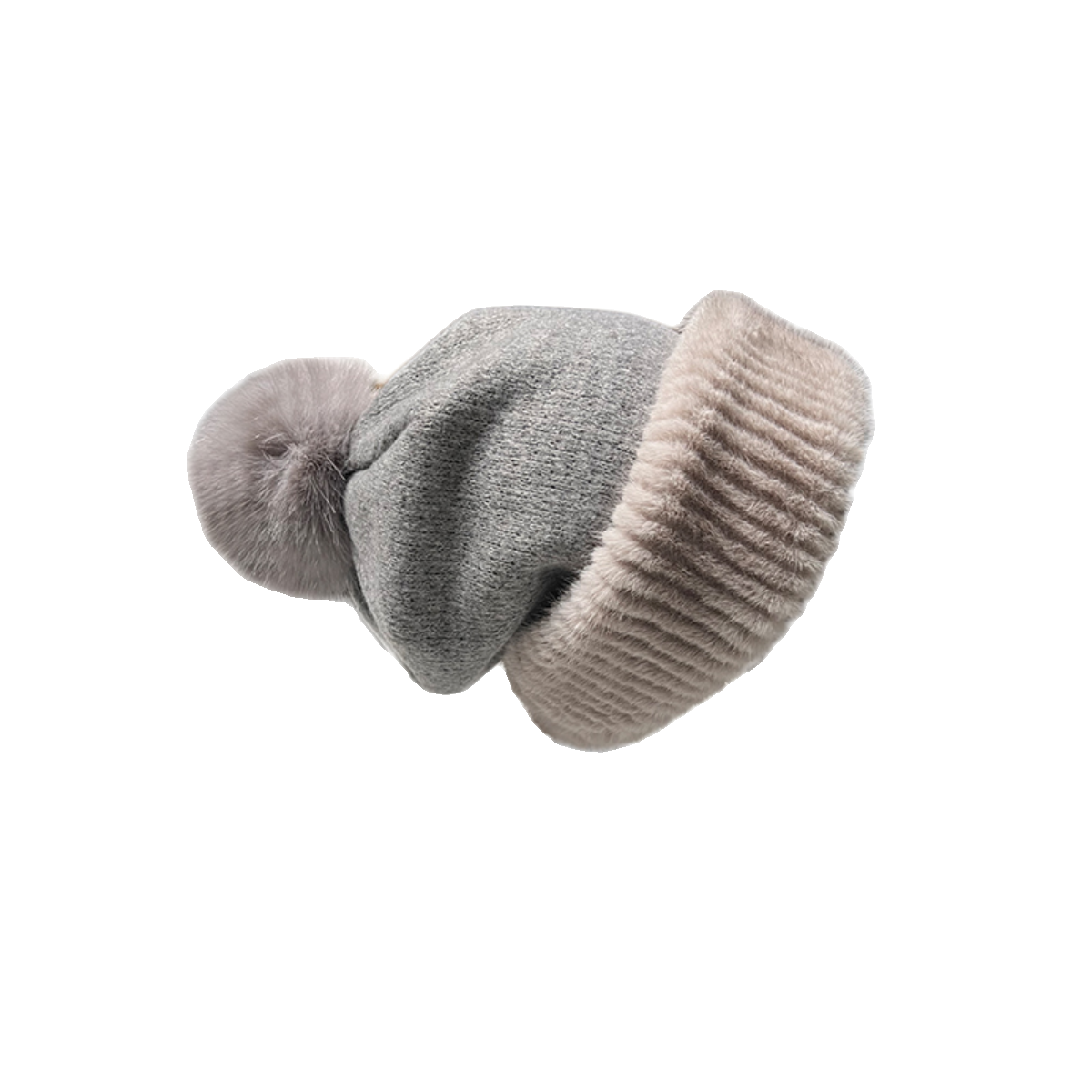 加绒毛线帽女冬季保暖时尚可爱护耳帽子水貂毛混纺针织帽滑雪帽潮