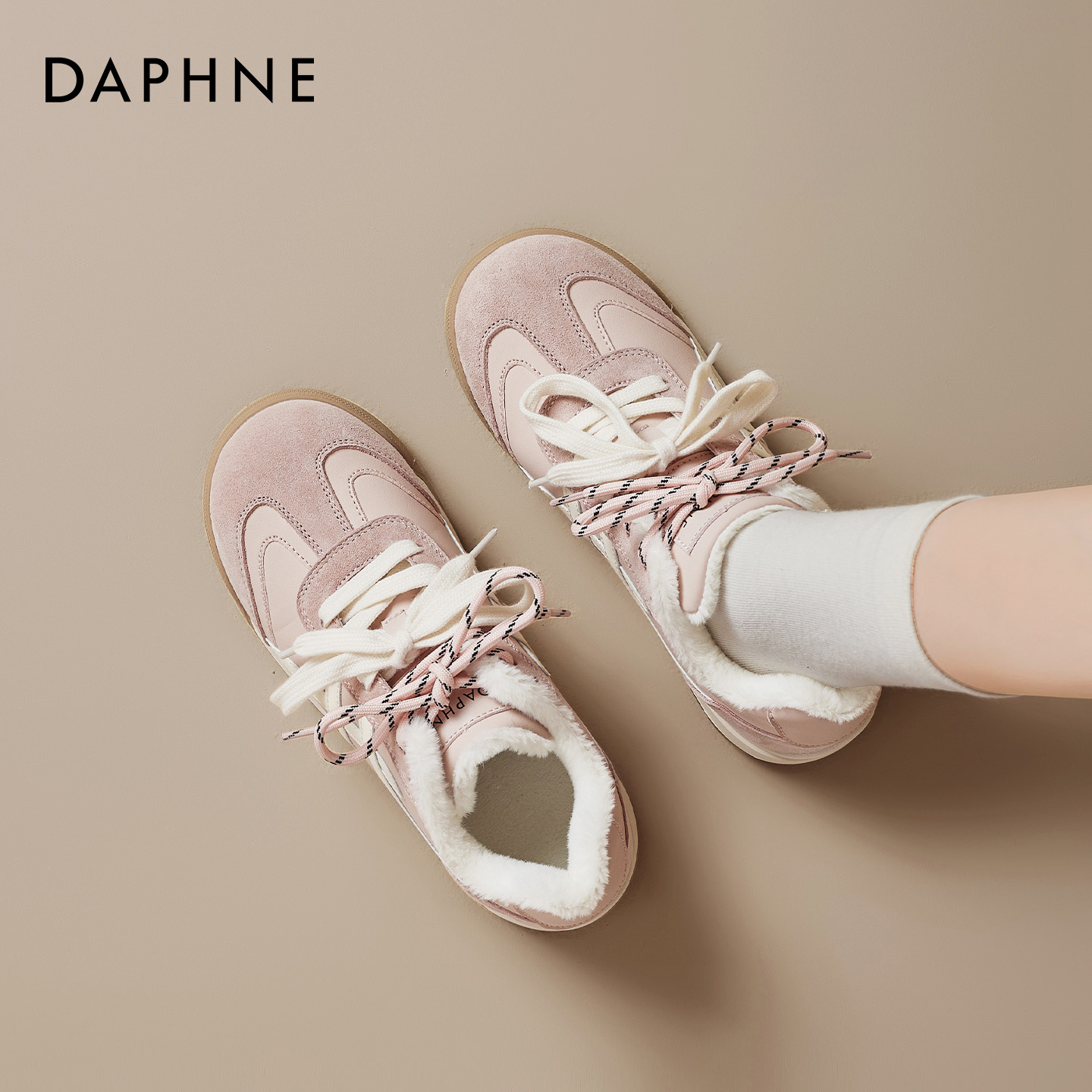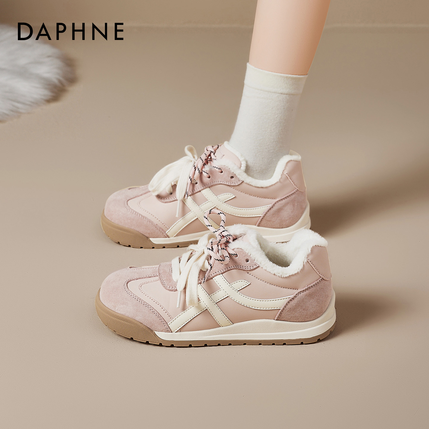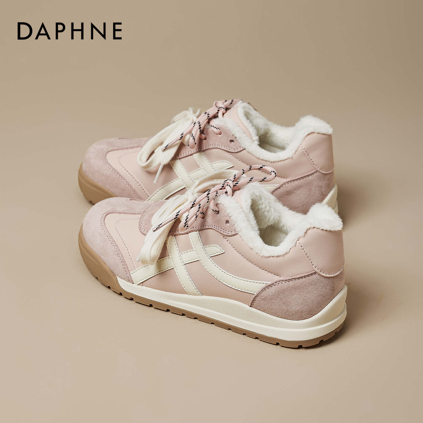 达芙妮加绒德训鞋女秋冬季2025新款保暖板鞋粉色厚底运动女鞋棉鞋