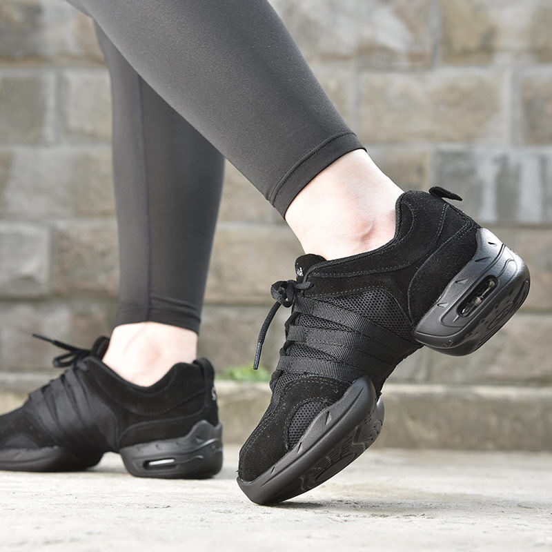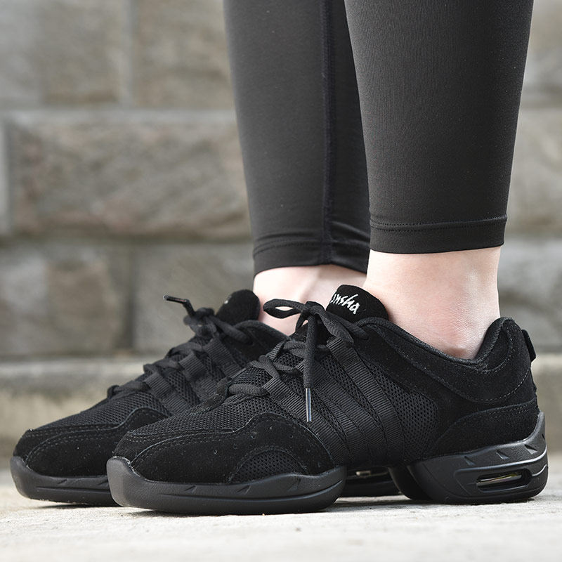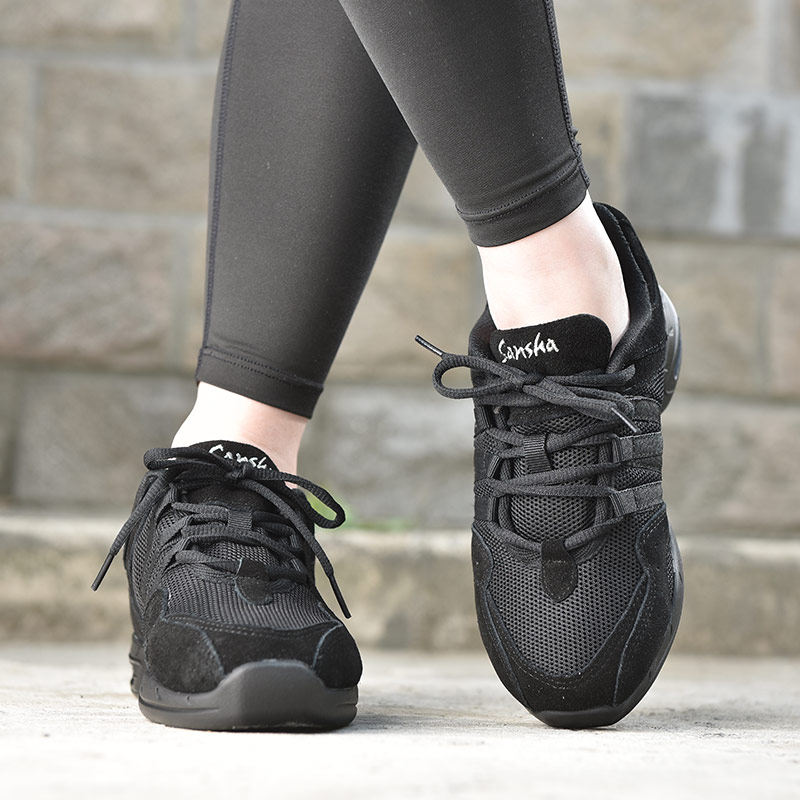 法国三沙成人黑色网面气垫现代舞爵士舞鞋舞蹈鞋广场舞鞋女软底