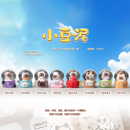 新款卡通猫猫小豆泥水晶球盲盒款创意桌面摆件装饰送女生礼物儿童