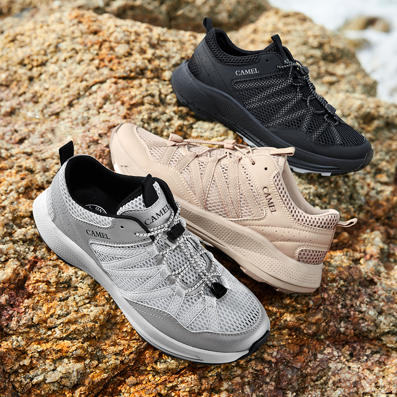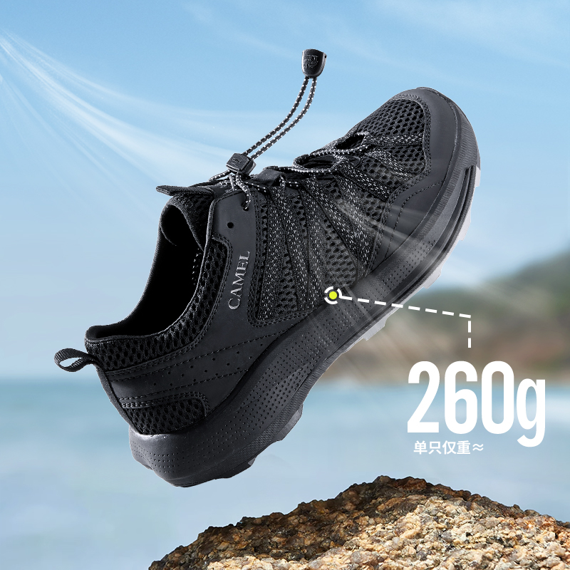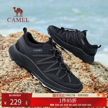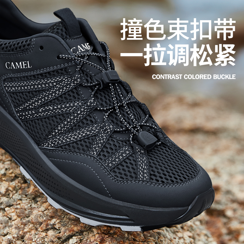 骆驼男鞋新款春季透气轻便网面休闲运动鞋厚底户外登山网孔徒步鞋