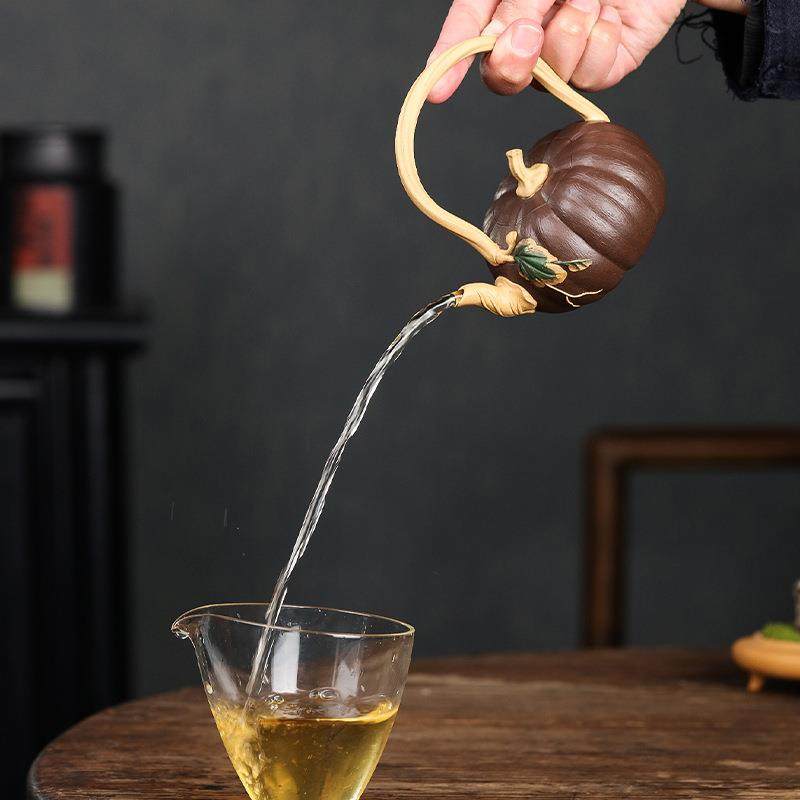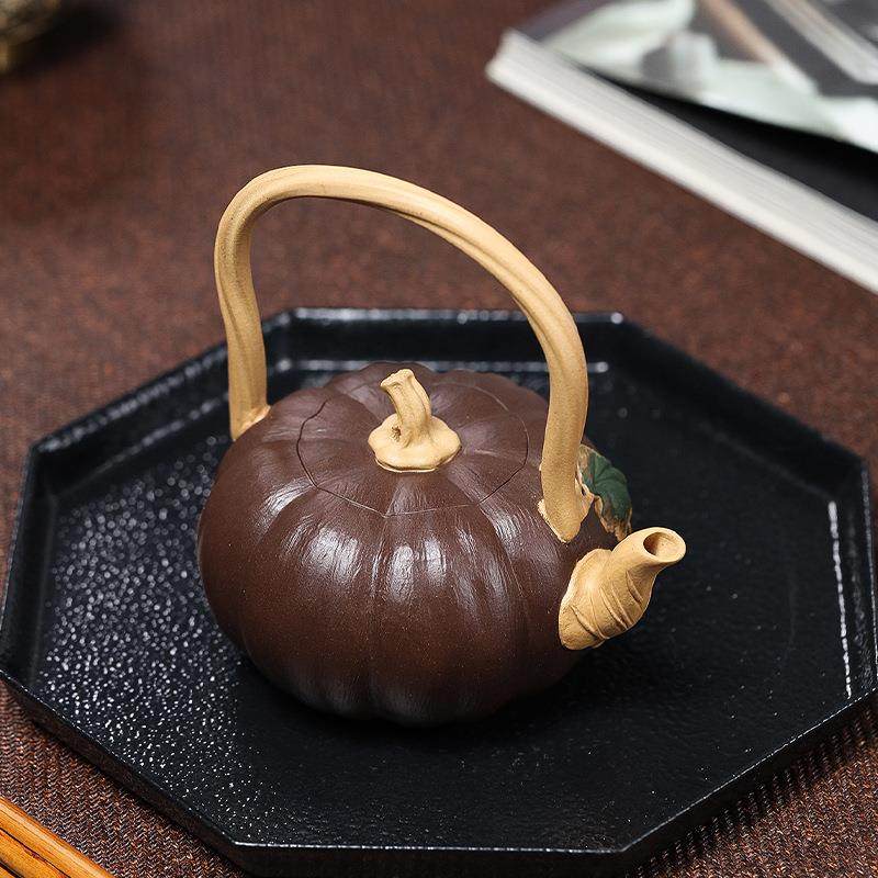 宜兴原矿紫泥段泥紫砂茶壶仿生器小品提梁壶南瓜壶居家茶具