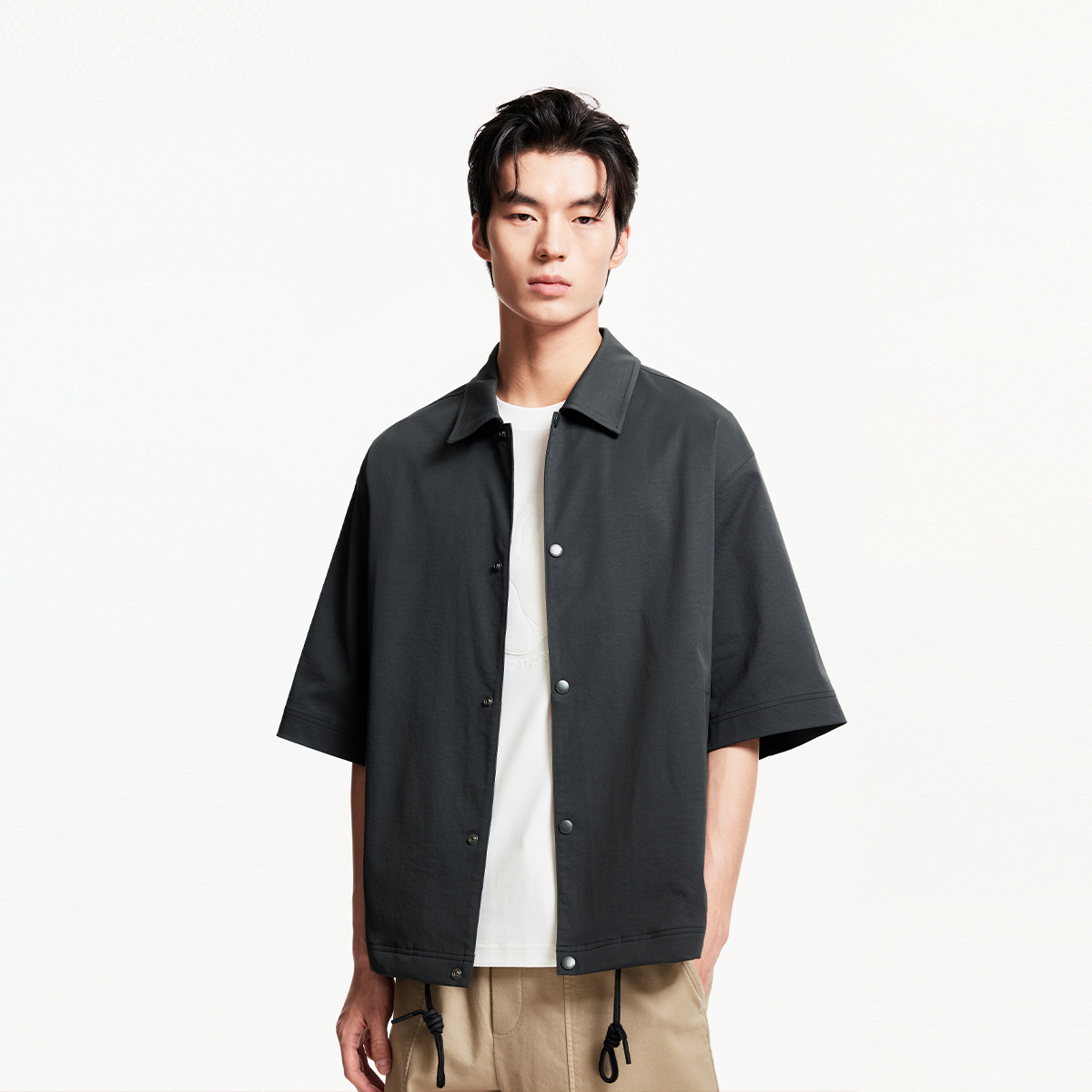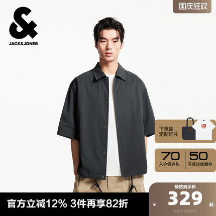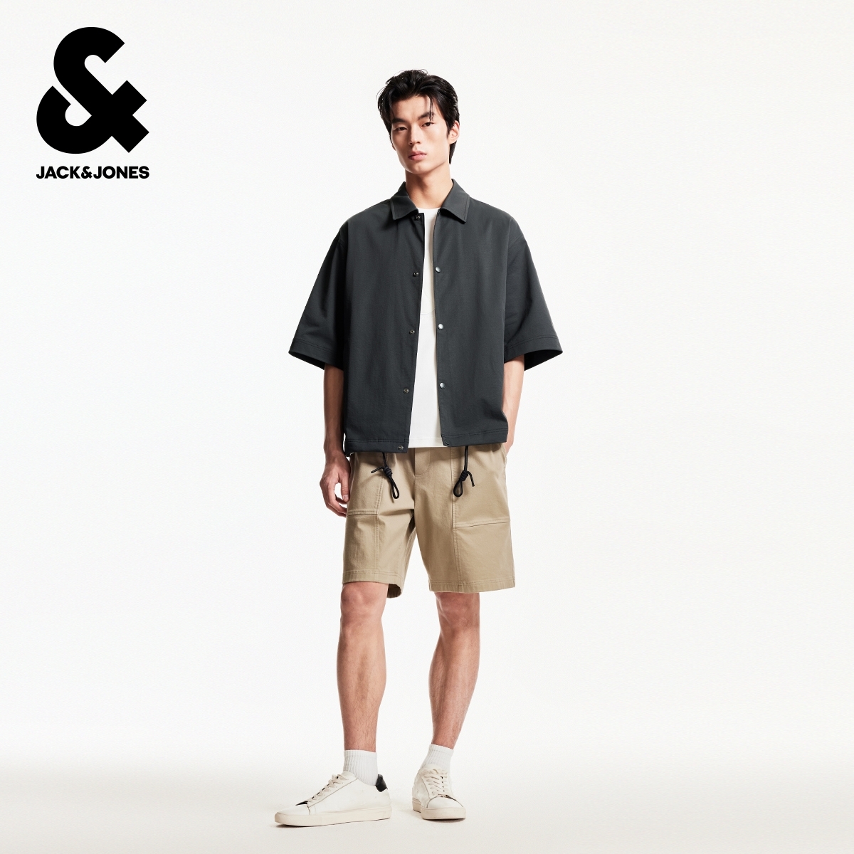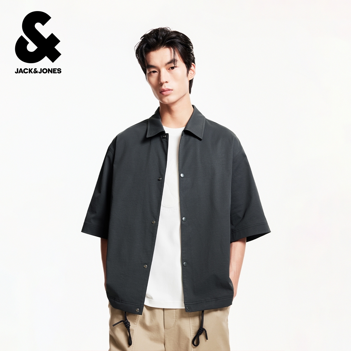 杰克琼斯夏季潮流宽松版型翻领领口按扣门禁双侧插袋夹克外套男装
