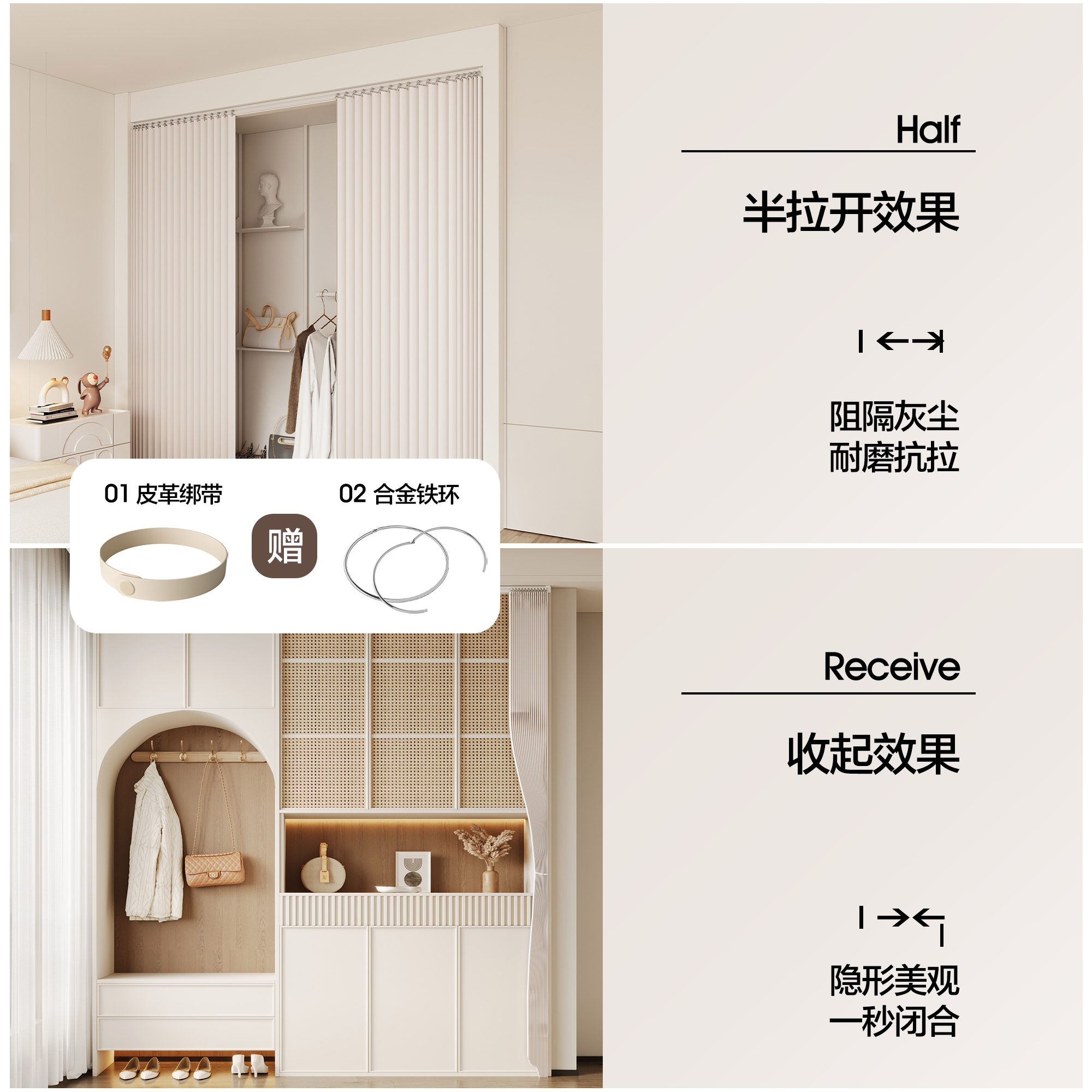 开放式衣帽间轨道柜子遮挡帘防尘衣柜免打孔门帘布帘磁吸折叠高级