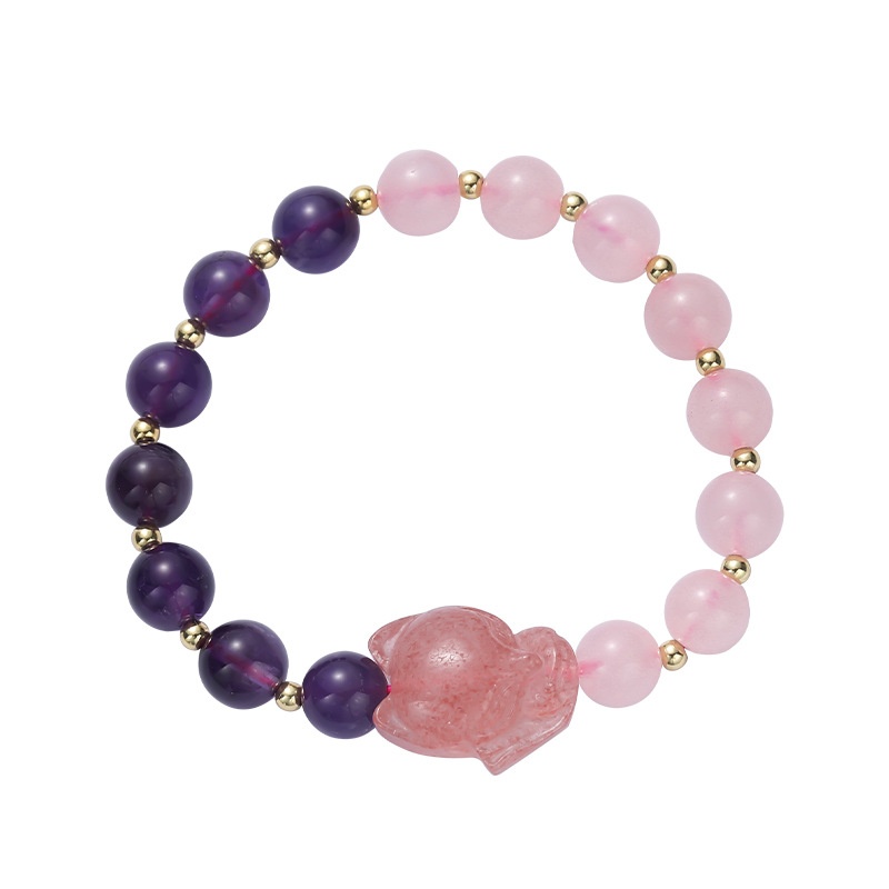 【紫丘之狐】天然水晶手链女韩版紫水晶手串设计感粉水晶手饰