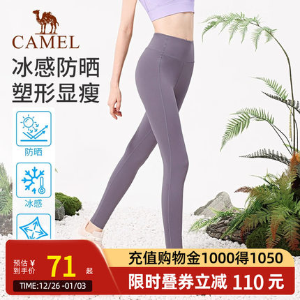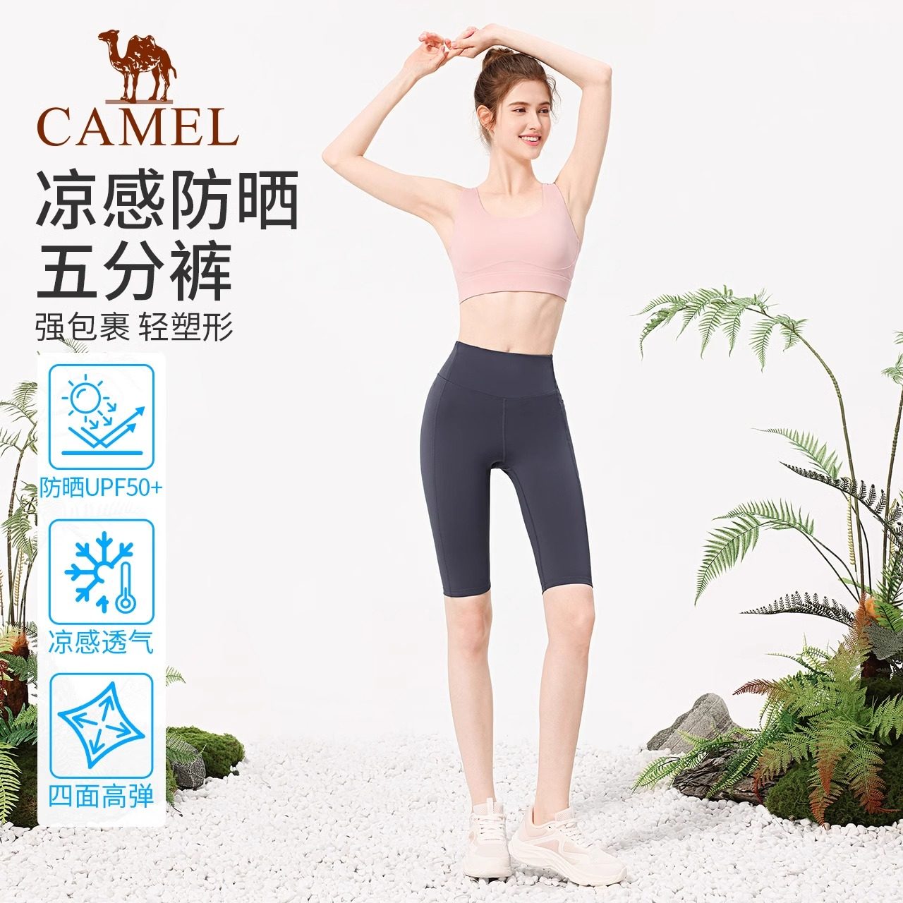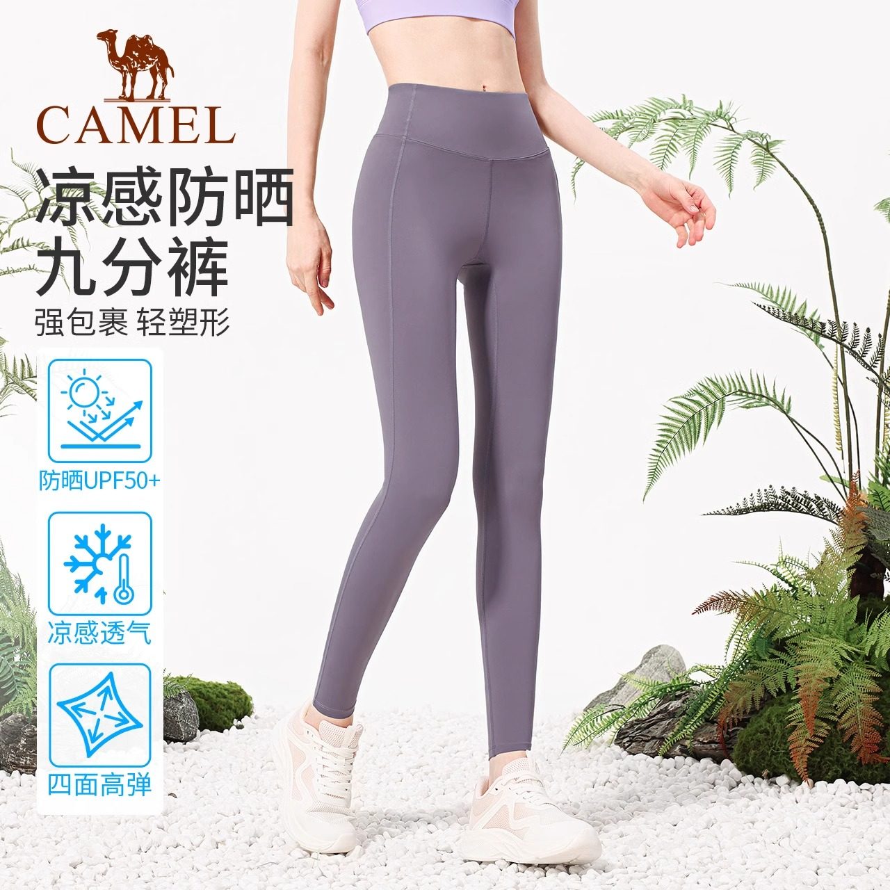 Camel骆驼瑜伽裤女夏高腰提臀防晒紧身健身裤普拉提九分运动长裤
