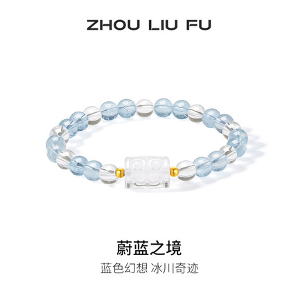 周六福18k水晶手串女蔚蓝之境海蓝宝石蓝色幻想手链招财新年礼物
