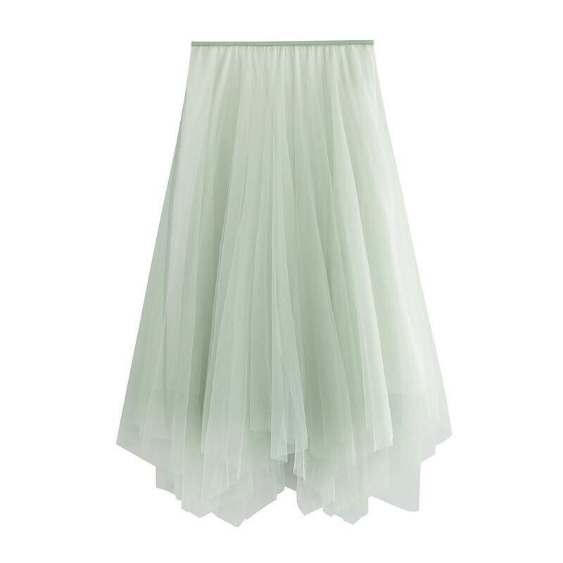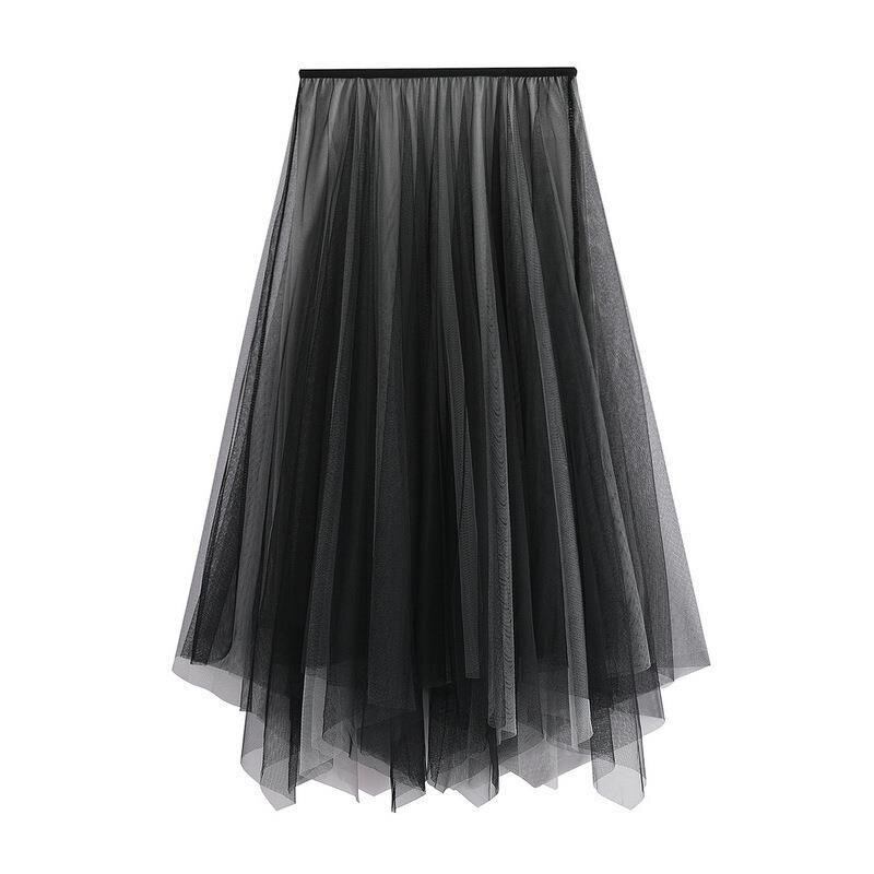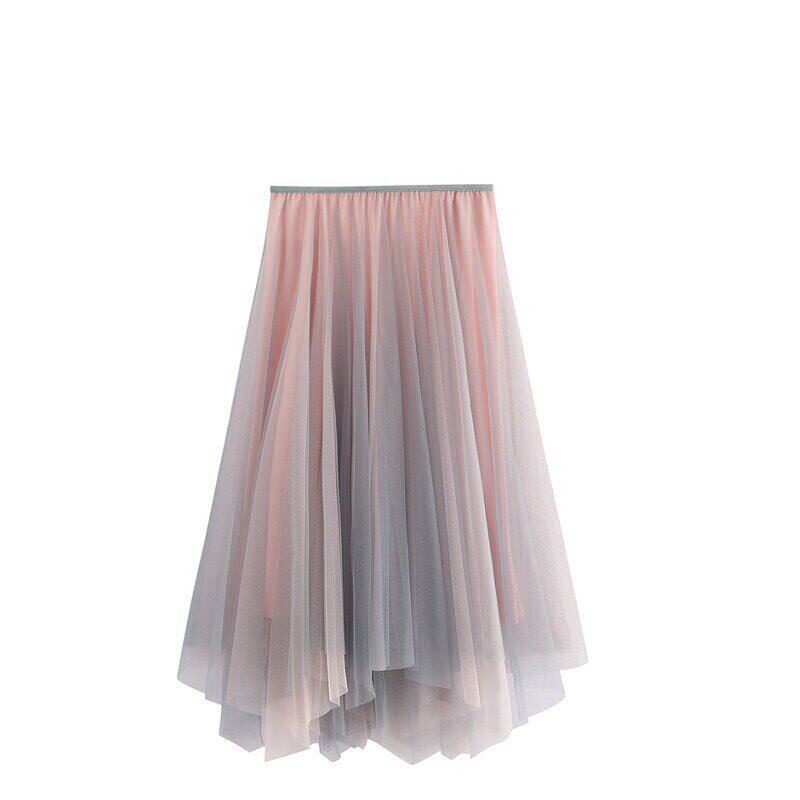不规则渐变色网纱裙女2026年春季纱裙中长款仙女裙高腰a字半身裙