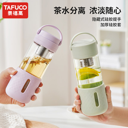 TAFUCO/泰福高茶水分离泡茶杯便携玻璃水杯户外耐热玻璃杯隔热杯