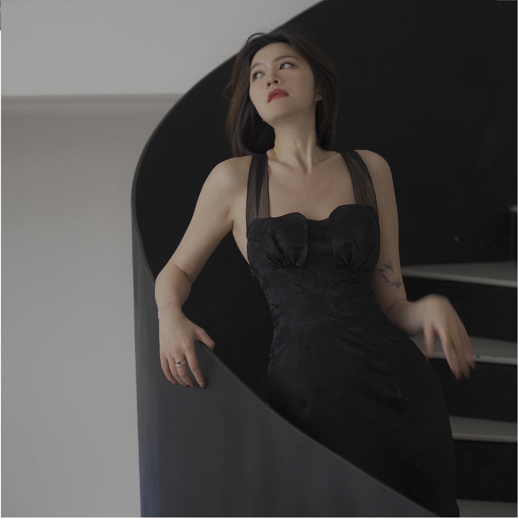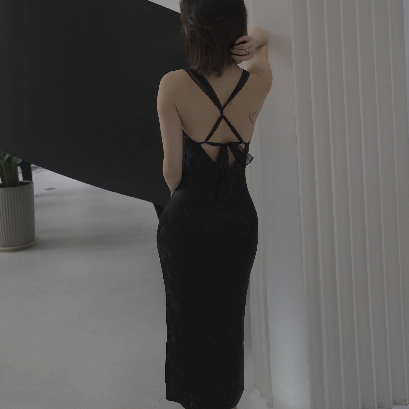 (清仓不退换)法式小众设计绑带修身系带真丝提花纯色连衣裙