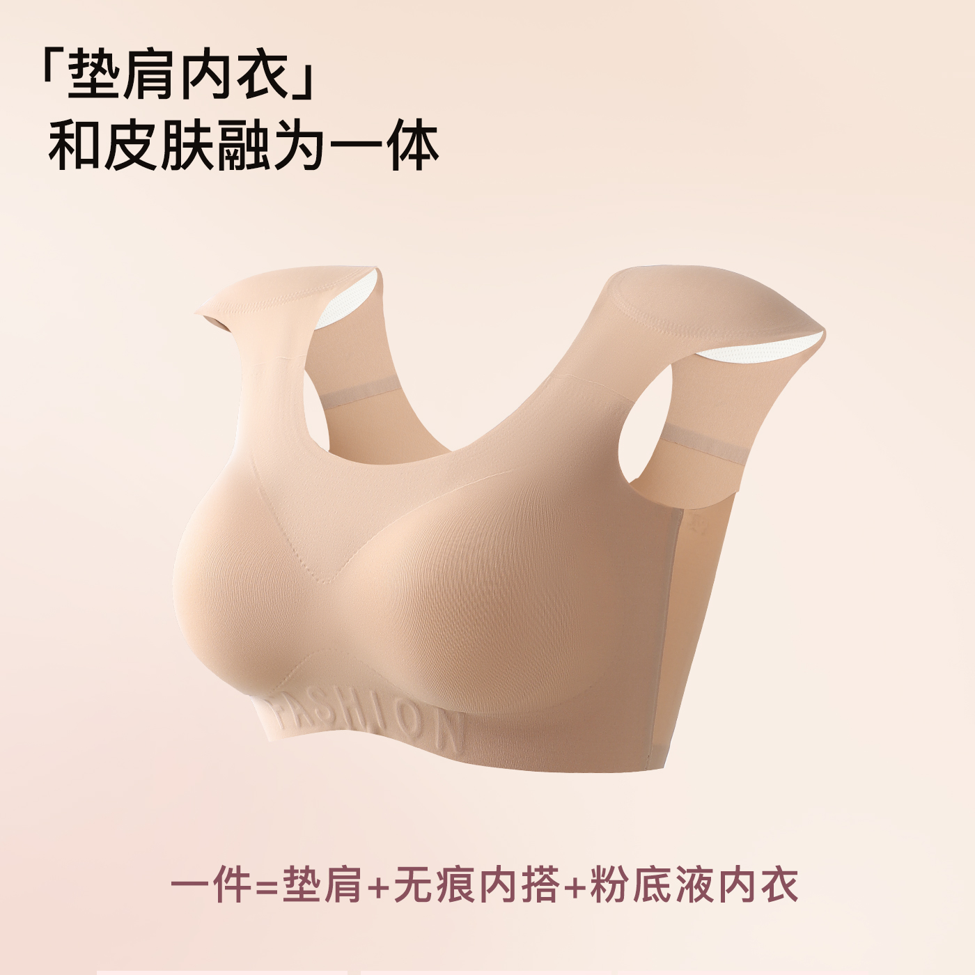 猫人垫肩内衣女小胸显大聚拢防下垂粉底液无痕隐形肤色直角肩文胸