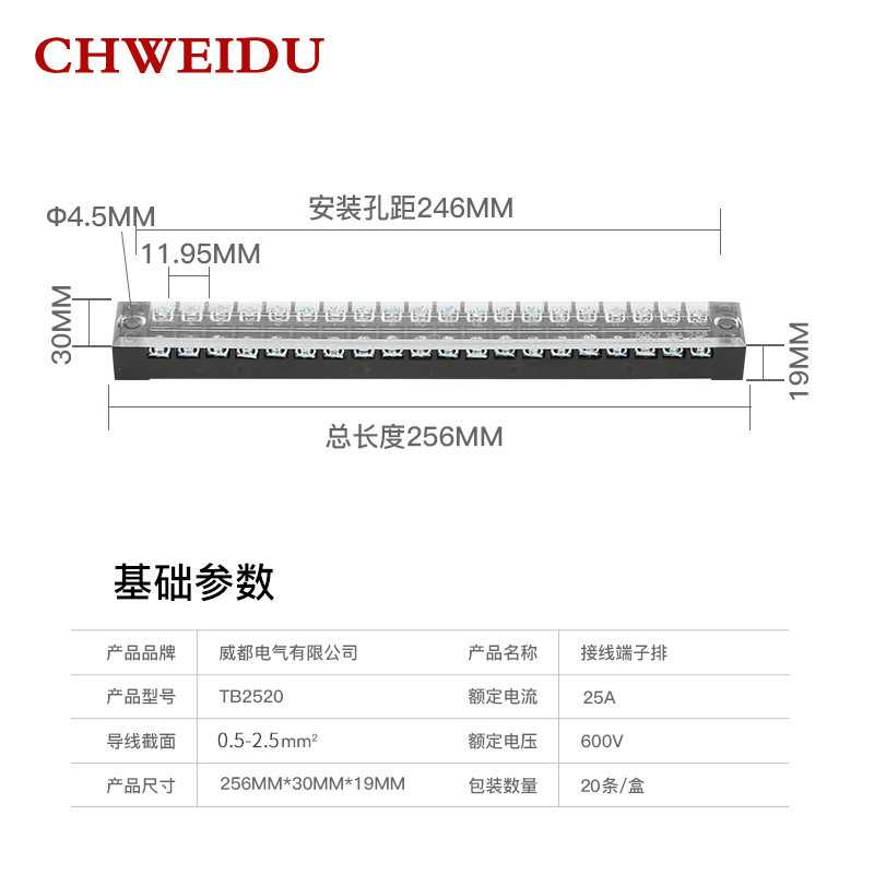 TB2520固定式接线端子排25A20P铁阻燃连接器快速接线端子盒接线柱