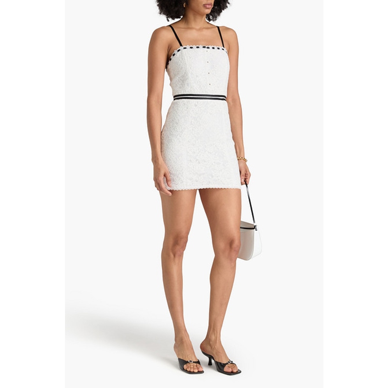 Alice + Olivia女士Matilda 绸缎边凸纹蕾丝迷你连衣裙 迷衣时尚