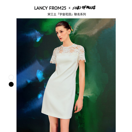 【宋三土联名】朗姿法式气质蕾丝刺绣设计感2024夏季新款连衣裙女