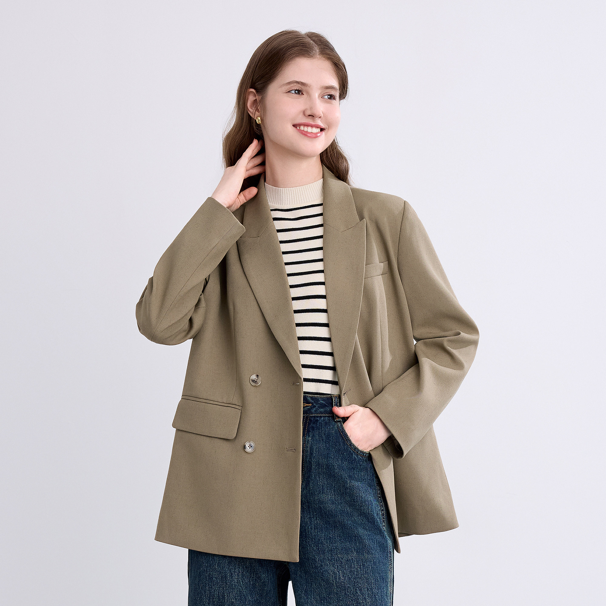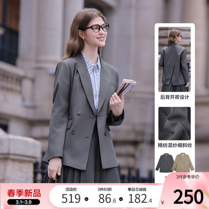 betu百图通勤风灰色西装外套女2026年春季新款小个子双排扣西服