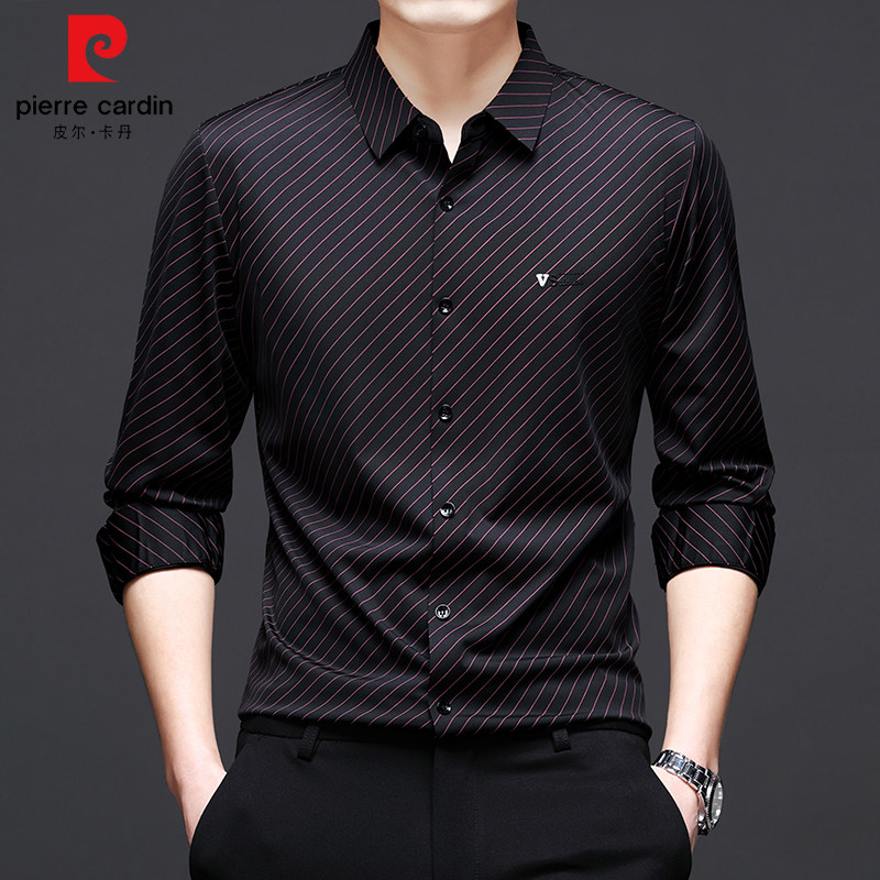【正品皮尔卡丹】条纹男士长袖衬衫抗皱免烫商务正装上班男装衬衫
